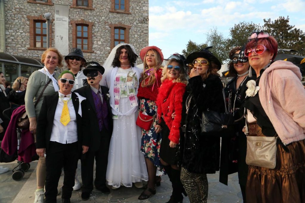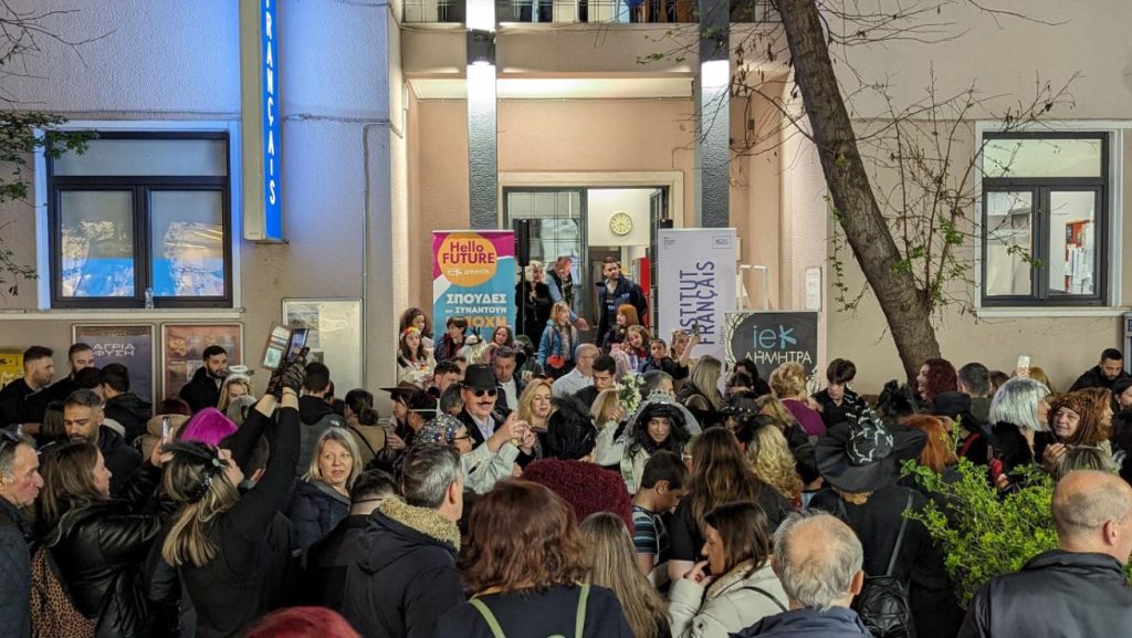 Το γιορτινό αποκριάτικο πλήθος κατέληξε στον πεζόδρομο της οδού Κούμα, μπροστά από το Γαλλικό Ινστιτούτο, όπου τα ελληνικά έθιμα συνάντησαν τη γαλλική παράδοση, με τους καρναβαλιστές να έχουν την ευκαιρία να γευτούν κρέπες.