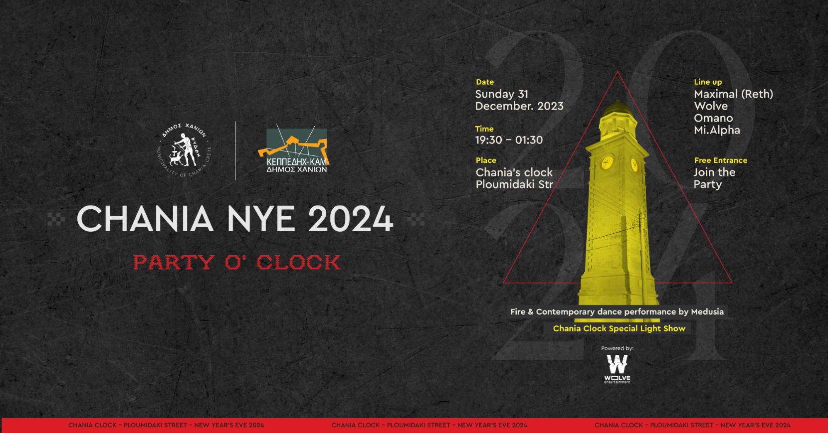 «Chania NYE’s 2024 Party-O’-Clock» | Ο Δήμος Χανίων υποδέχεται το Νέο Έτος 2024 κάτω από το Ρολόι του Δημοτικού Κήπου