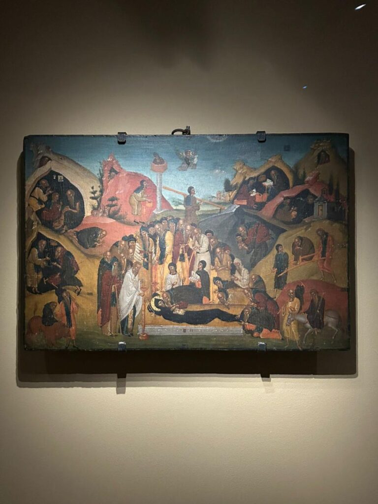 Η έκθεση αφηγείται ιστορίες για πλάσματα, που έζησαν μέσα στα σπήλαια, για ζώα που έχουν εξαφανιστεί, αλλά και για τον άνθρωπο των Πετραλώνων, που έζησε περίπου 300.000 χρόνια πριν στο σπήλαιο Πετραλώνων, στη Χαλκιδική, τα παιδάκια Νεάντερταλ, που έτρεχαν, γύρω από τη φωτιά, στο σπήλαιο της Θεόπετρας 130.000 χρόνια πριν, αφήνοντας τα αποτυπώματά τους στη λάσπη, τους κυνηγούς που ζούσαν σε σπήλαια γύρω από τη λίμνη των Ιωαννίνων, την Παμβώτιδα, και στην κοιλάδα του Βοϊδομάτη, 15.000 χρόνια πριν, την κοινότητα ψαράδων, που έδρασε στα Γιούρα την 8η και την 7η χιλιετία π.Χ., νεολιθικές τελετές στο σπήλαιο Αγριομερνός της Σάμου, τους γεωργούς και κτηνοτρόφους, που ζούσαν στη βραχοσκεπή των Καταρρακτών Σιδηροκάστρου, γύρω στο 3.000 π.Χ., τους ανθρώπους που προσέφυγαν με τις αγωνίες και τις προσδοκίες τους στα σπήλαια των Νυμφών από τον Κίσσαβο ως τις ακτές του Βόρειου Αιγαίου, τους μοναχούς που ασκήτευσαν στα σπήλαια των Πρεσπών, αλλά και για τους θρύλους και τις παραδόσεις, που συνοδεύουν τις σπηλιές στον νεότερο πολιτισμό. Παρουσιάζεται μία σπάνια εικόνα του 15ου αιώνα με την κοίμηση του Οσίου Εφραίμ του Σύρου. Στην εικονογράφηση περιλαμβάνονται σπήλαια, στα οποία οι μοναχοί και ερημίτες κατοικούσαν και προσεύχονταν. Είναι η δεύτερη φορά που η συγκεκριμένη εικόνα μετακινείται από το Όρος.