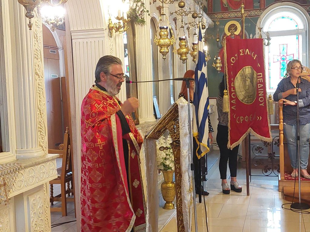 Στη μνήμη των Ελλήνων πολεμιστών, που έπεσαν στη μάχη, τελέσθηκε επιμνημόσυνη δέηση στον Ιερό Ναό Κοιμήσεως της Θεοτόκου, από τον ιερέα π. Κωνσταντίνο Σαββίδη, ενώ το κύριο μέρος της εκδήλωσης πραγματοποιήθηκε στο Πνευματικό Κέντρο της ενορίας, αντί του ιερού των Ηρώων Πεδινού, λόγω κακοκαιρίας.