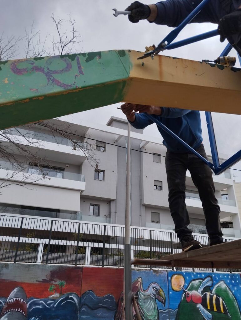 Οι εργασίες πραγματοποιήθηκαν στο πλαίσιο συντήρησης του αθλητικού εξοπλισμού σχολείων του Δήμου και περιλάμβαναν: