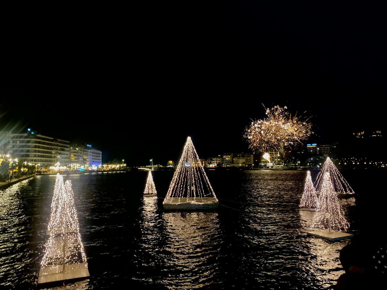 Η Χαλκίδα άναψε τα Χριστουγεννιάτικα δέντρα της σε στεριά και θάλασσα