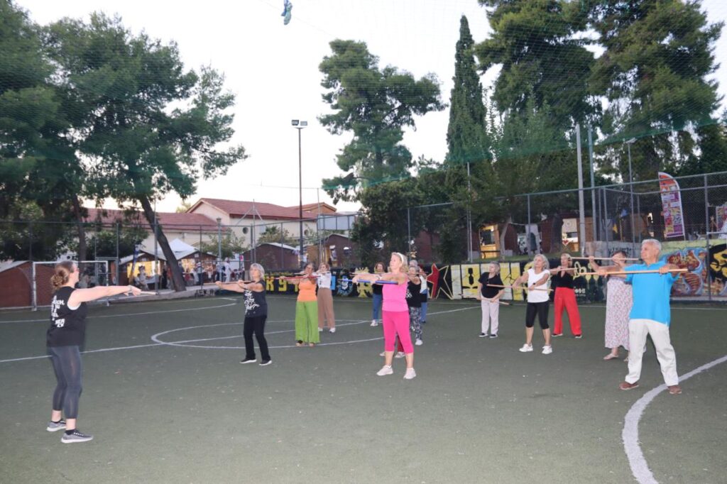 Εξαιρετικά ενδιαφέρον και, κυρίως, χρηστικό για όλες και όλους υπήρξε το γυμναστικό πρόγραμμα, με τίτλο: «Άσκηση και Υγεία», που παρουσίασαν από κοινού ο Ιωνικός Σύνδεσμος και το Σωματείο Κοινωνικής Πρόνοιας των Απανταχού Ινεπολιτών-Κασταμονιτών «Η Κοίμηση της Θεοτόκου», το απόγευμα του Σαββάτου 13 Σεπτεμβρίου 2025, στο γήπεδο 5Χ5, κοντά στον Ι.Ν. του Αγίου Γεωργίου, στην Ελευθερούπολη, στο πλαίσιο των Ιωνικών Ημερών 2025.