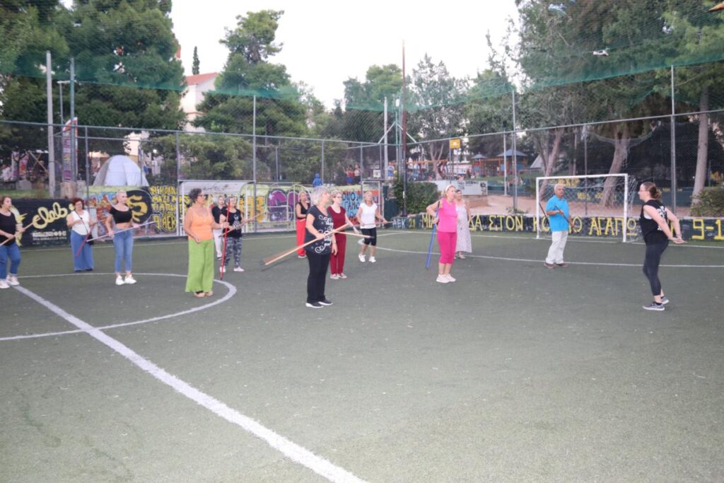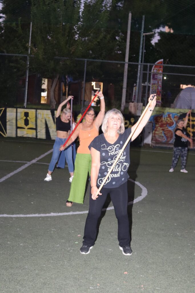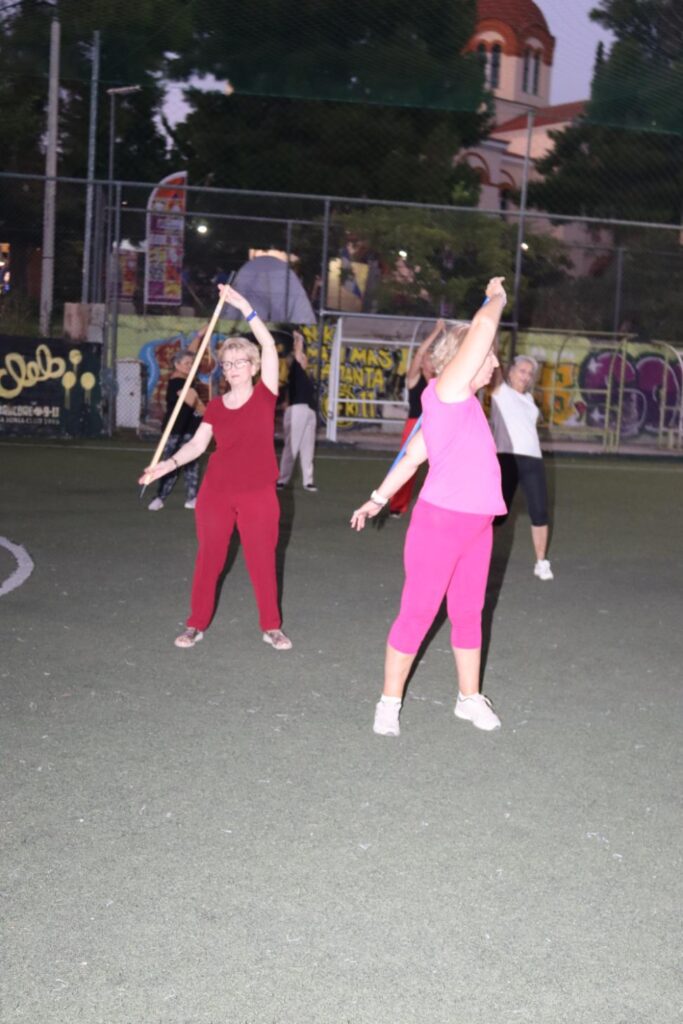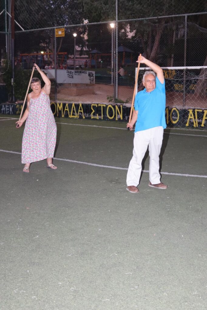 Συγκεκριμένα, παρουσιάστηκε ένα πρόγραμμα ήπιας άσκησης με βασικό γυμναστικό όργανο ένα …σκουπόξυλο, με σκοπό την πρόληψη και αντιμετώπιση των χρόνιων παθήσεων, που προκαλούνται από την καθιστική ζωή, με την άψογη καθοδήγηση της Γυμνάστριας κ. Γιάννας Στασινοπούλου.