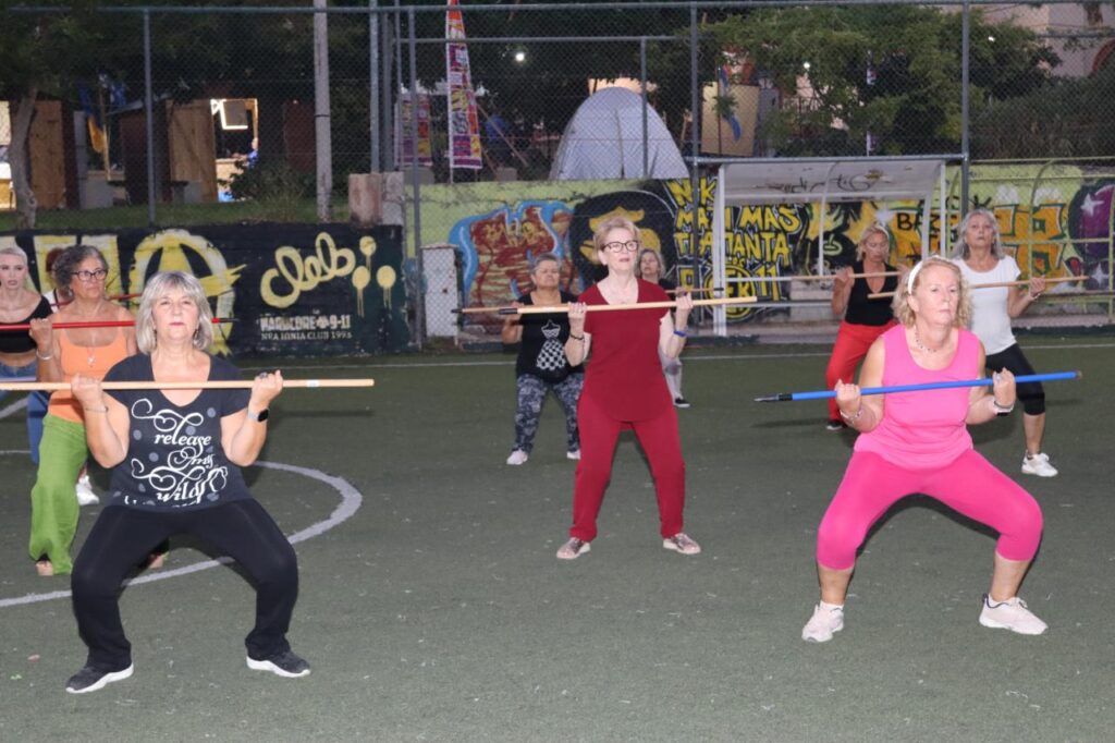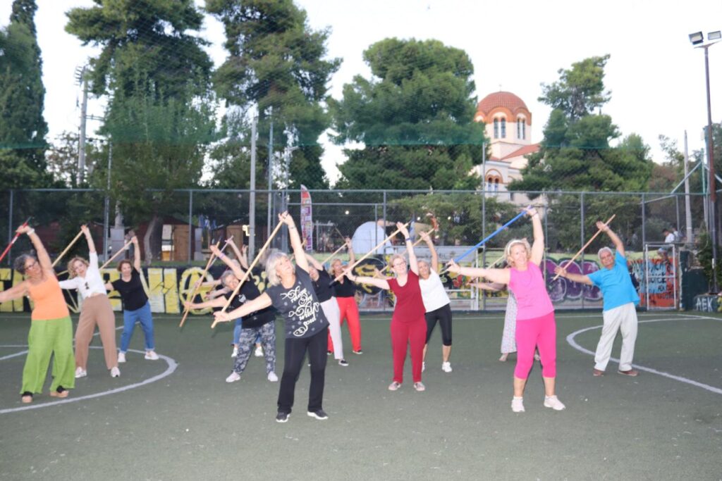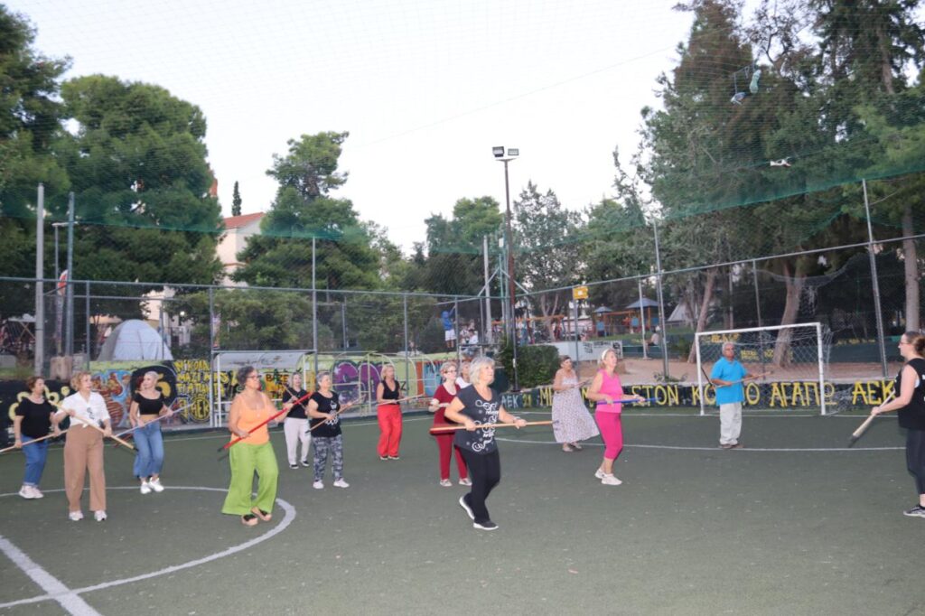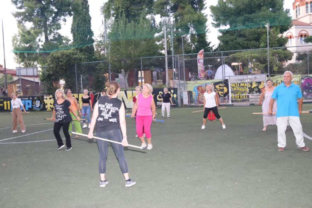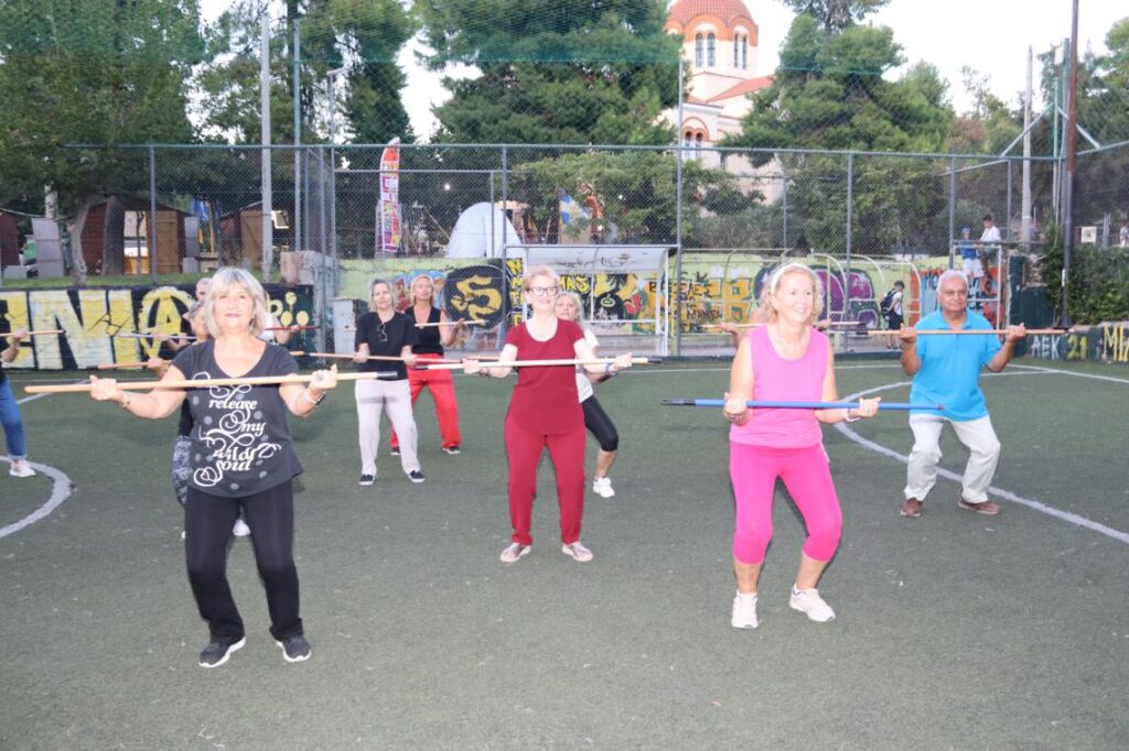 Συγκεκριμένα, παρουσιάστηκε ένα πρόγραμμα ήπιας άσκησης με βασικό γυμναστικό όργανο ένα …σκουπόξυλο, με σκοπό την πρόληψη και αντιμετώπιση των χρόνιων παθήσεων, που προκαλούνται από την καθιστική ζωή, με την άψογη καθοδήγηση της Γυμνάστριας κ. Γιάννας Στασινοπούλου.