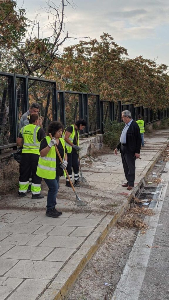 Οι εργασίες περιλάμβαναν κλάδεμα και καθαρισμό της περίφραξης από τα κλαδιά και τα χόρτα, καθώς και καθαρισμό των πεζοδρομίων από τα ξηρά χόρτα και διάφορα άλλα αντικείμενα, προκειμένου μία από τις κεντρικές λεωφόρους, που διασχίζουν την πόλη, να είναι φροντισμένη και καθαρή.