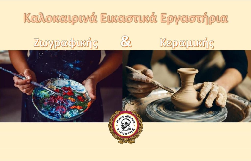 Ο Δήμος Αιγάλεω, μέσω του Τμήματος Πολιτισμού και των Εικαστικών Εργαστηρίων, διοργανώνει Δωρεάν Καλοκαιρινά Καλλιτεχνικά Σεμινάρια Ζωγραφικής & Κεραμικής Ενηλίκων, για τον μήνα Ιούλιο.