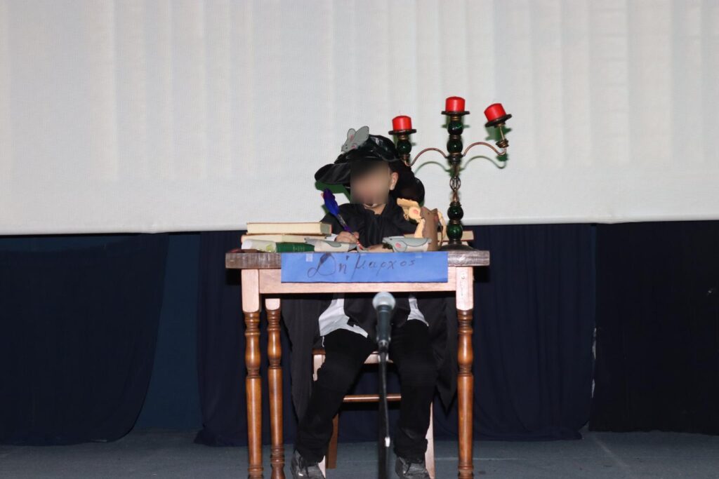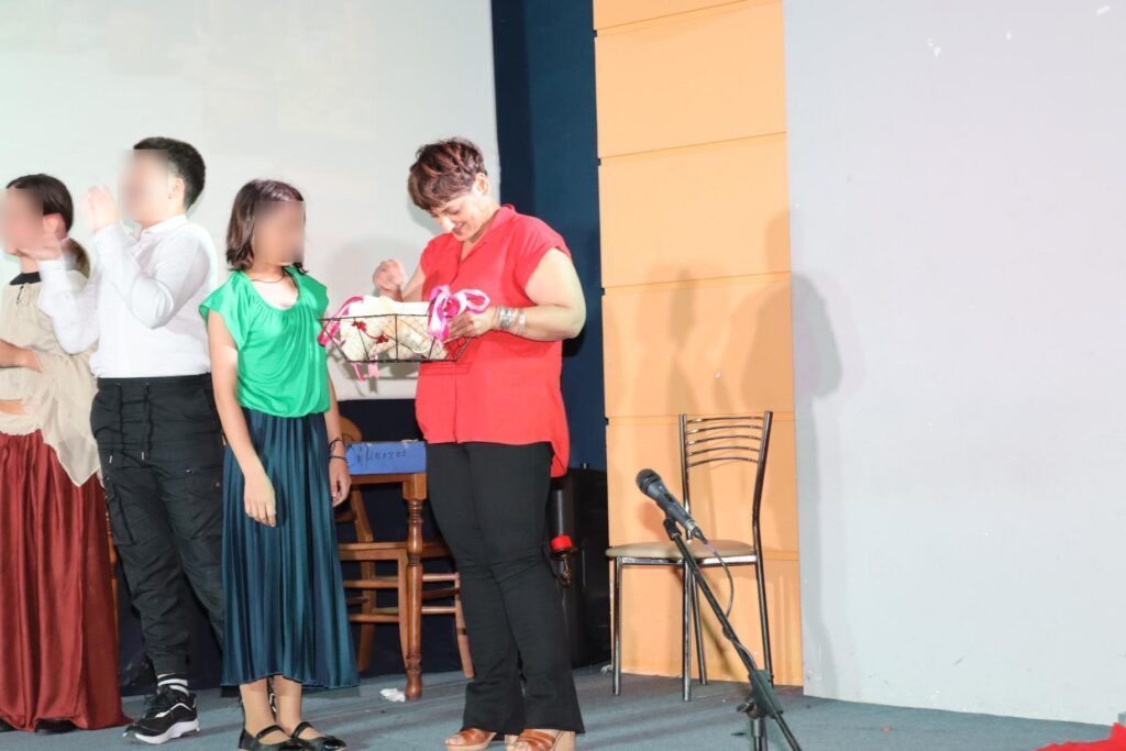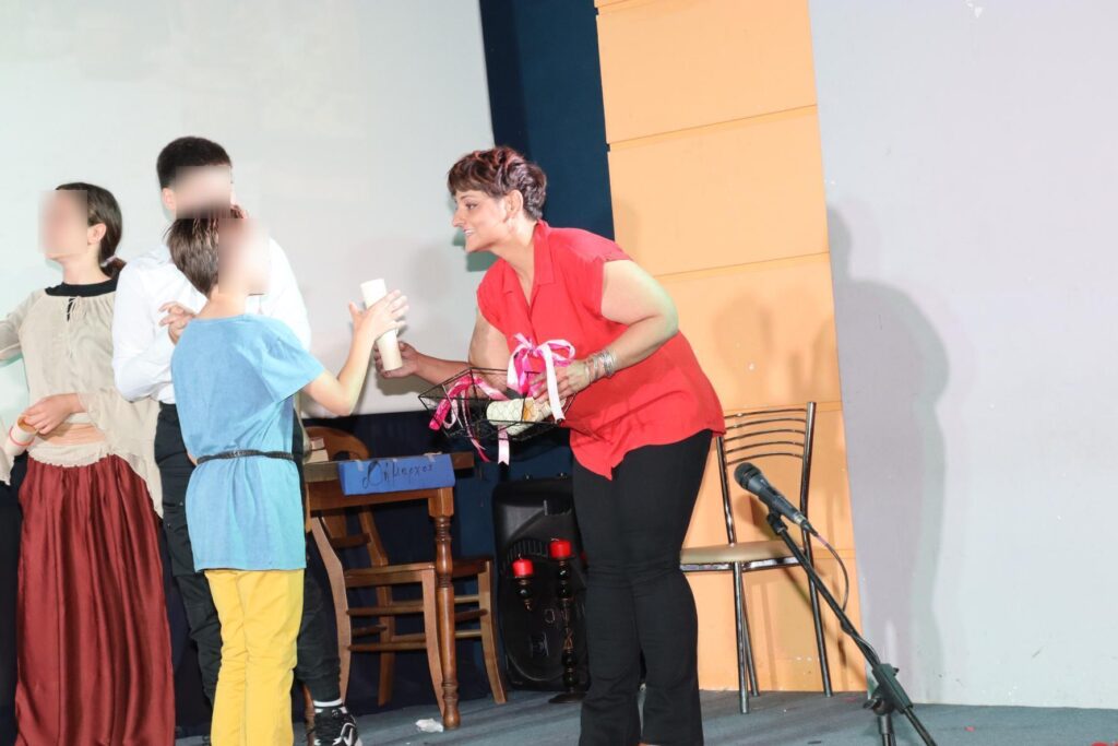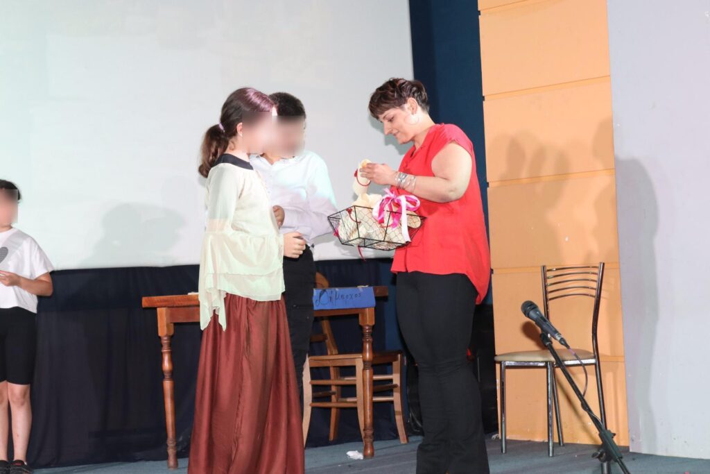 Αμέσως μετά από την ολοκλήρωση της παράστασης, η κ. Δέσποινα Γεωργαντζή αναφέρθηκε προσωπικά σε όλα τα παιδιά, που συμμετείχαν στην επιτυχημένη αυτή παράσταση, τα οποία στη συνέχεια παρέλαβαν από ένα αναμνηστικό.