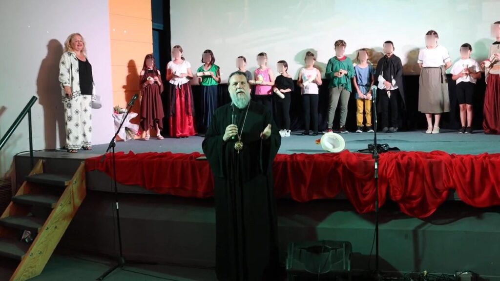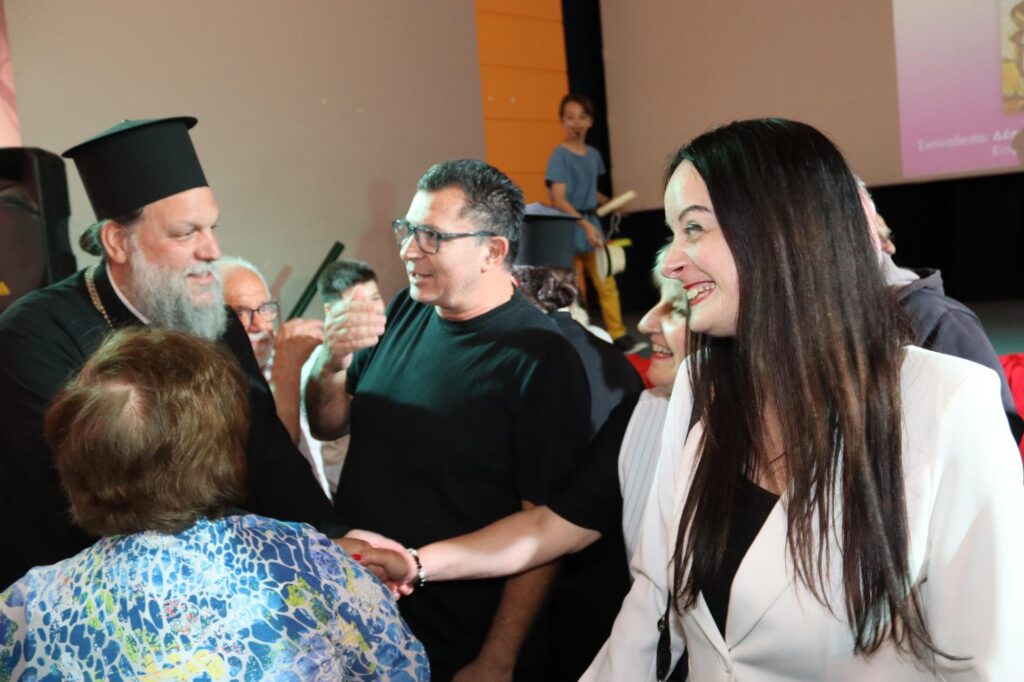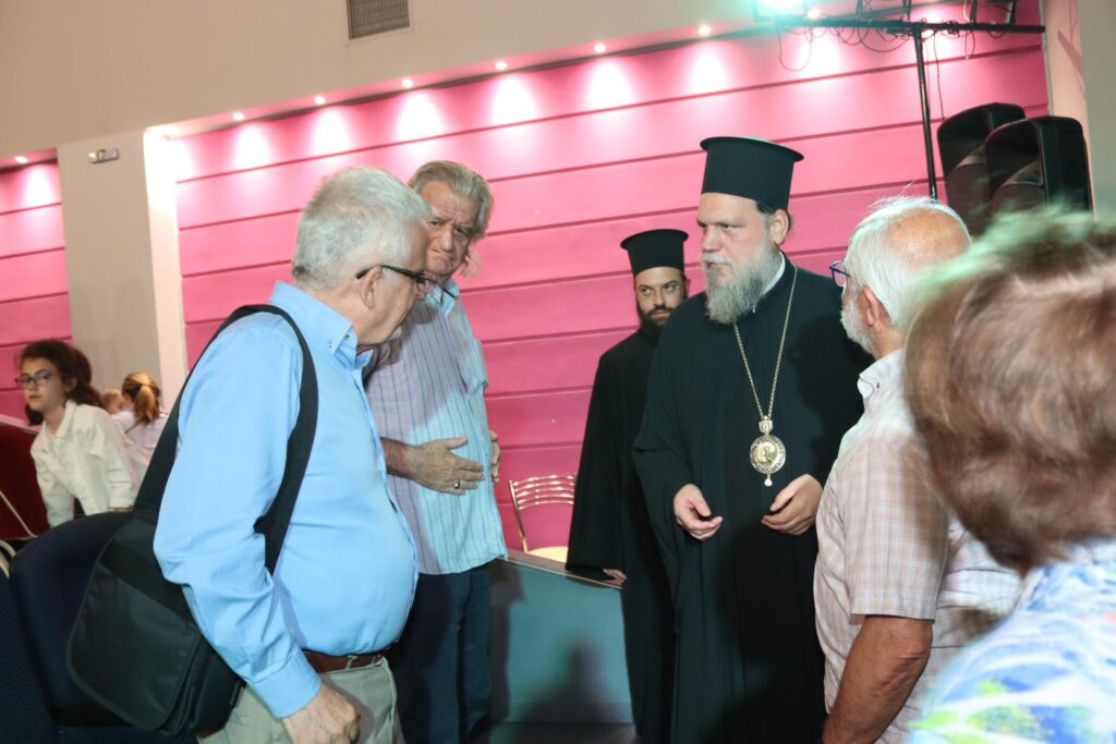 Κατόπιν, ο Σεβασμιότατος Μητροπολίτης Νέας Ιωνίας, Φιλαδελφείας, Ηρακλείου και Χαλκηδόνος κ.κ. Γαβριήλ χαιρέτισε την εκδήλωση και συνεχάρη τους μικρούς πρωταγωνιστές για την αξιόλογη εμφάνισή τους, λέγοντας, μεταξύ άλλων, πως: «Θέλω να πω συγχαρητήρια στους γονείς, συγχαρητήρια σε όλη την προσπάθεια την οποία κάνουν τα παιδιά. Ένα γερό χειροκρότημα το αξίζουν πάρα πολύ. Και θέλω να μου επιτρέψετε να συγχαρώ τη Δέσποινα Γεωργαντζή και τον Ιωνικό Σύνδεσμο για αυτήν την προσπάθεια, την οποία κάνουνε τα 11 αυτά χρόνια. Εύχομαι μέσα από την καρδιά μου να συνεχίσετε, να είναι ο Θεός κοντά σας, να σας βλέπουν όλοι και να καμαρώνουνε, να κάνετε κι άλλα όμορφα έργα, όπως αυτό το οποίο κάνετε. Έχετε δέσει, είσαστε πάρα πολύ καλή θεατρική ομάδα. Τα θερμά μου συγχαρητήρια και σας καμαρώνουμε και να είστε όλα ευλογημένα από τον Θεό.». Όλα όσα είπε ο Σεβασμιότατος Μητροπολίτης κ.κ. Γαβριήλ μπορείτε να τα παρακολουθήσετε πατώντας ΕΔΩ.