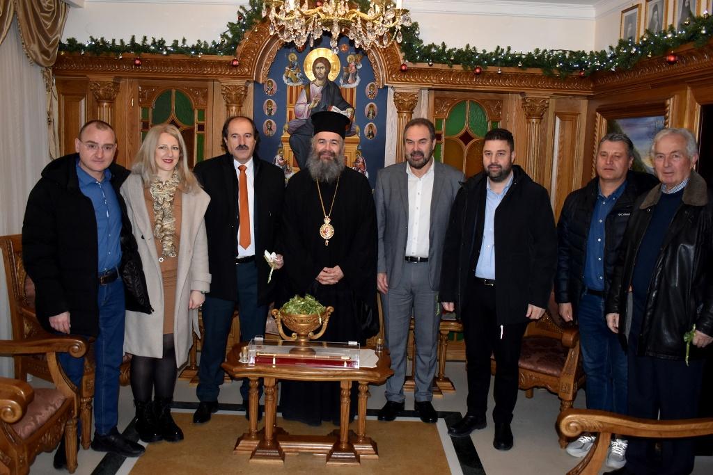 Οι κ.κ. Αθανάσιος Τάσκας και Βασίλης Γιαννάκης, συνοδευόμενοι από Αντιδημάρχους, δημοτικούς συμβούλους και συνεργάτες τους, επισκέφτηκαν αρχικά τον Σεβασμιότατο Μητροπολίτη Φλωρίνης Πρεσπών και Εορδαίας κ.κ. Ειρηναίο στο Επισκοπείο, με τον οποίο αντάλλαξαν ευχές.