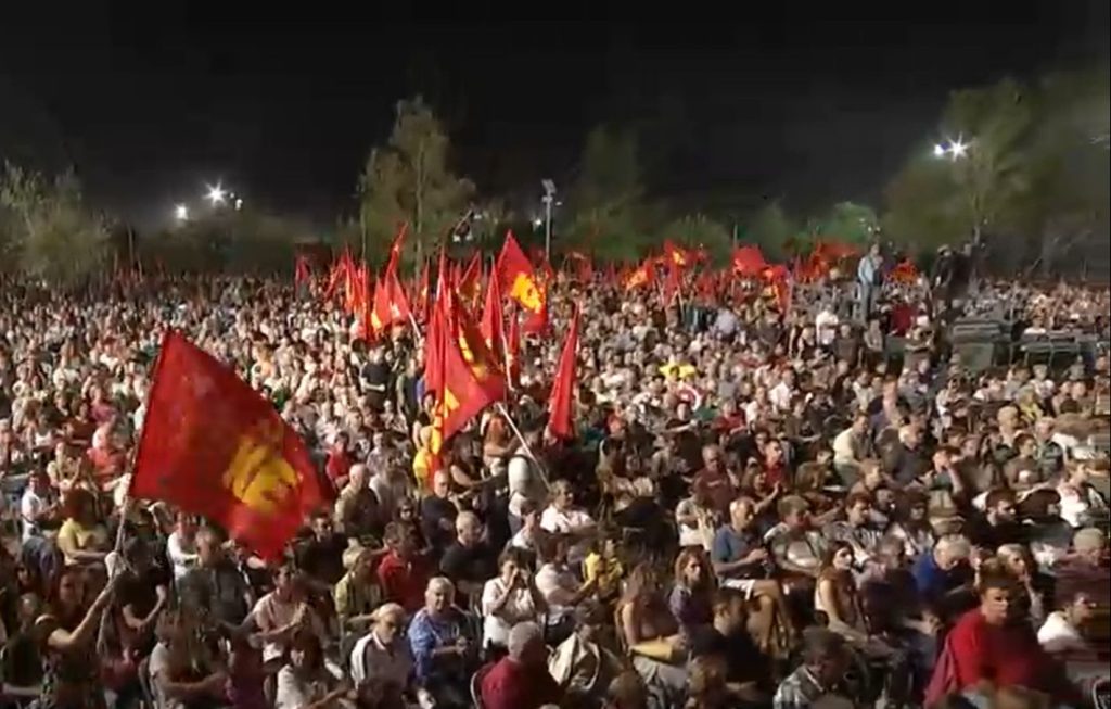 Φίλες και φίλοι, συντρόφισσες και σύντροφοι, απόψε ανταμώνουμε με όλους όσοι αναθάρρησαν, πήραν κουράγιο γιατί είδαν πως μπορεί στις πρόσφατες εκλογές ο χάρτης να βάφτηκε μπλε, όπως κοκορεύεται ο Μητσοτάκης, αλλά αυτό το μπλε κάπου-κάπου ξεθωριάζει, γιατί αχνοφαίνεται ένα κόκκινο…