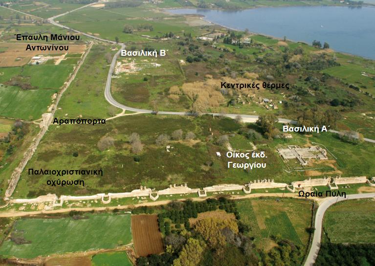 Πυρήνας 1: Παλαιοχριστιανική πόλη (κατάλοιπα της παλαιοχριστιανικής οχύρωσης και τμήματα της ρωμαϊκής οχύρωσης, Βασιλικές Α΄, Β΄, Γ΄ και ΣΤ΄ και σημαντικά μνημεία της ρωμαϊκής περιόδου, όπως ο οίκος του έκδικου Γεωργίου, οι κεντρικές θέρμες κ.ά.).