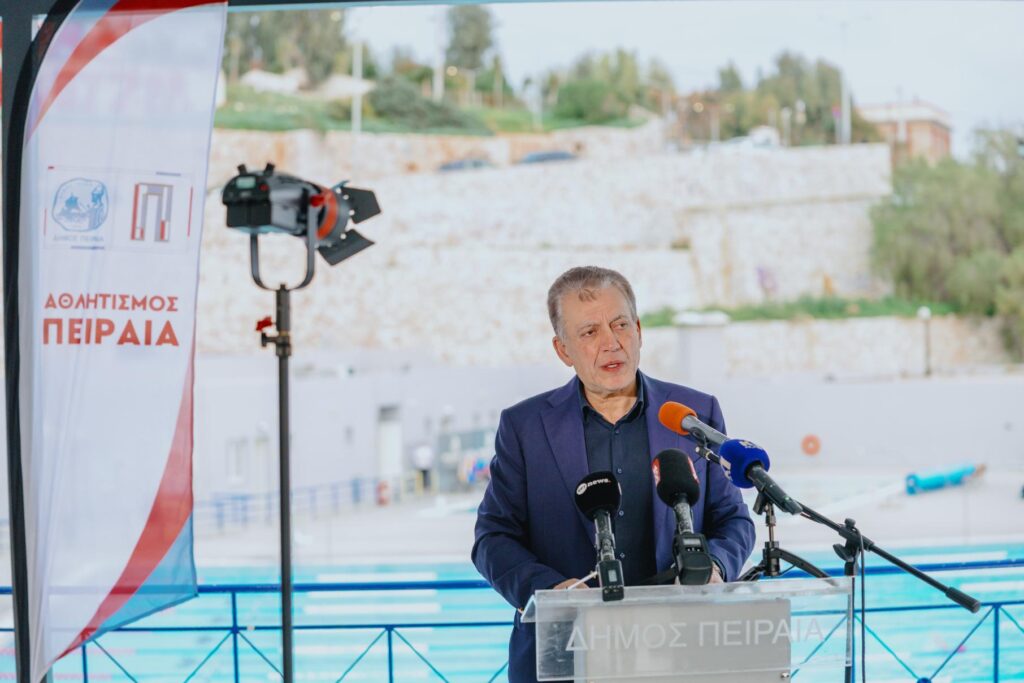 Το σημαντικό αυτό έργο ανακοίνωσε ο αναπληρωτής υπουργός Αθλητισμού, κ. Γιάννης Βρούτσης, σε ειδική εκδήλωση, που πραγματοποιήθηκε στο Κολυμβητήριο, παρουσία του Δημάρχου Πειραιά, κ. Γιάννη Μώραλη, του Εντεταλμένου Δημοτικού Συμβούλου Αθλητισμού, κ. Νίκου Γέμελου, καθώς και εκπροσώπων της Πολιτείας και της Τοπικής Αυτοδιοίκησης, σηματοδοτώντας την έναρξη μιας κομβικής παρέμβασης για τον υγρό στίβο της πόλης.