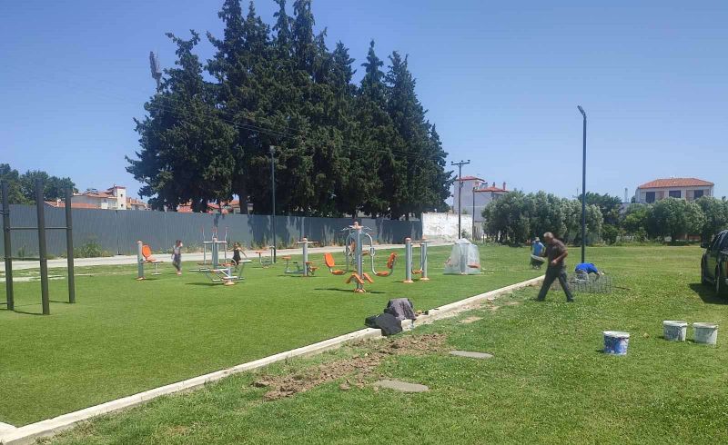 Ειδικότερα, αφού ολοκληρώθηκε η εκσκαφή χώρου 400 τ.μ., αρχικά έγινε οριοθέτηση και τοποθέτηση ενός σετ 9 οργάνων εκγύμνασης εξωτερικού χώρου. Την τρέχουσα περίοδο είναι σε εξέλιξη η διαμόρφωση του χώρου, με επίκεντρο εργασίες εξωραϊσμού του αστικού εξοπλισμού (τοποθετούνται παγκάκια, μεταλλικές σχάρες στάθμευσης ποδηλάτων, κάδοι απορριμμάτων κ.ά.), ενώ θα ακολουθήσει η τοποθέτηση βρύσης και η επίστρωση με κυβόλιθους στα πεζοδρόμια γύρω από τον υπό διαμόρφωση περιβάλλοντα χώρο.