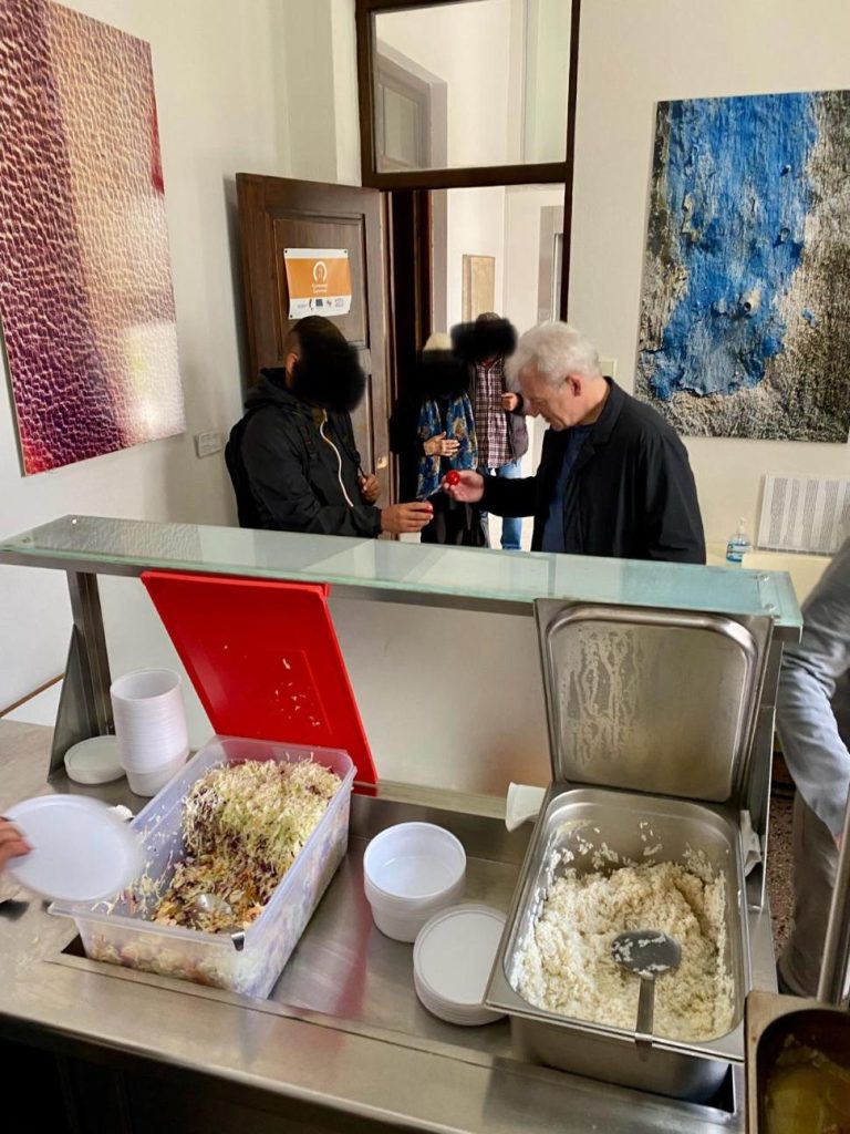 Τα Ιδρύματα, όπως κάθε μέρα έτσι και σήμερα, ανήμερα της Κυριακής του Πάσχα, διένειμαν φαγητό με πασχαλινά εδέσματα σε όλους όσοι το είχαν ανάγκη, τόσο στον Κοινωνικό χώρο επί της οδού Μονής Αγκαράθου, όσο και στα Καμίνια, σε συνεργασία με τον Πολιτιστικό Σύλλογο.