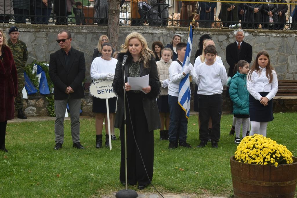 Οι εκδηλώσεις ξεκίνησαν με επιμνημόσυνη δέηση στον χώρο του Ηρώου της κοινότητας και ακολούθησε ομιλία για το ιστορικό της επετείου από τη Φιλόλογο-Διευθύντρια του Γυμνασίου Βεύης, κ. Βασιλική Μούζα, προσκλητήριο πεσόντων κατοίκων της Βεύης, κατάθεση στεφάνων και η ανάκρουση του εθνικού ύμνου από τη Φιλαρμονική του Δήμου Φλώρινας.