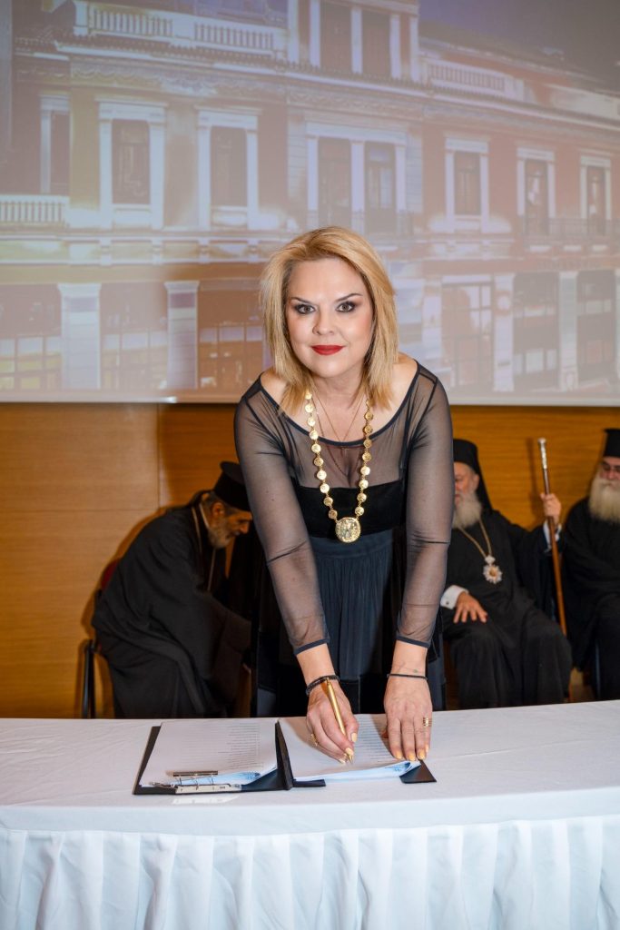 Στη συνέχεια, ακολούθησε η εκφώνηση των όρκων από τη Δήμαρχο Χαλκιδέων και τους Συμβούλους, και η υπογραφή του σχετικού Πρακτικού Ορκωμοσίας από όλες και όλους.