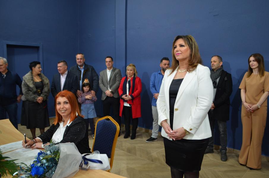 Μετά από την ολοκλήρωση της ομιλίας της Δημάρχου Σκύδρας, κ. Κατερίνας Ιγνατιάδου, υπογράφτηκε από τους αιρετούς το Πρακτικό Ορκωμοσίας.