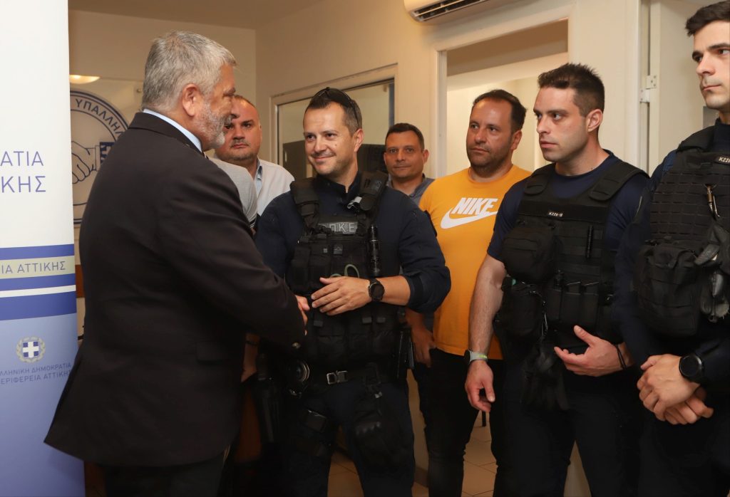 Την έμπρακτη στήριξη της Ελληνικής Αστυνομίας για την ουσιαστική προσφορά της στην προστασία και ασφάλεια της ζωής και της περιουσίας των πολιτών επιβεβαίωσε για ακόμη μια φορά ο Περιφερειάρχης Αττικής κ. Γιώργος Πατούλης με την παράδοση εκ μέρους της Περιφέρειας Αττικής ατομικών συλλογών Α΄ Βοηθειών στους αστυνομικούς της Ομάδας Πρόληψης και Καταστολής Εγκλήματος (Ο.Π.Κ.Ε.).