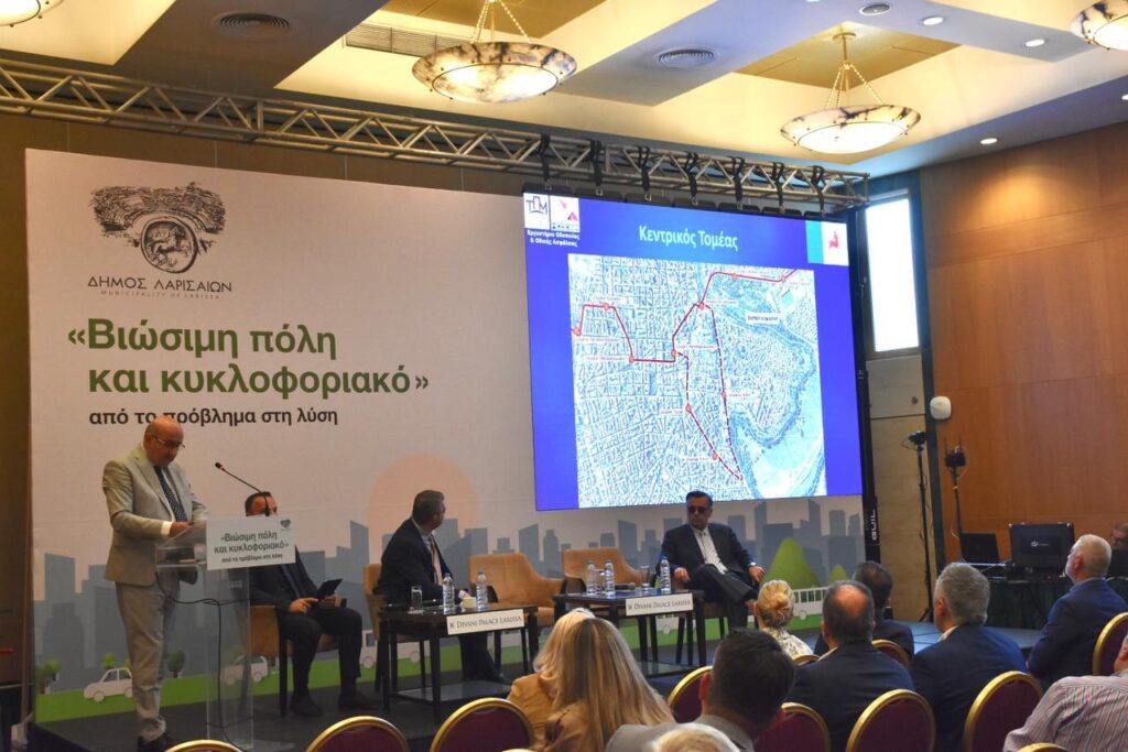Ακολούθως, ο Πρόεδρος του Τ.Ε.Ε. Κεντρικής & Δυτικής Θεσσαλίας, κ. Νίκος Παπαγεωργίου, τόνισε πως: «Οφείλουμε να κοιτάξουμε στο τι μπορούμε να κάνουμε για τη Λάρισα του αύριο. Δεν μιλάμε μόνο με τεχνικούς όρους, αλλά με τους όρους της πόλης, της βιωσιμότητας και του μέλλοντος.», και εξήγησε πως: «Σήμερα, ο αριθμός των οχημάτων έχει φτάσει σε 110.000 οχήματα στην πόλη, σε έναν πληθυσμό 155.000 πολιτών, ενώ έως το 2050 ο αριθμός θα έχει αυξηθεί σύμφωνα με τα δεδομένα στα 150.000 οχήματα. Η Λάρισα έχει μία δεύτερη ευκαιρία και πρέπει να απαντήσουμε στο αν θα σχεδιάσουμε το μέλλον ή θα συζητάμε το παρελθόν.».