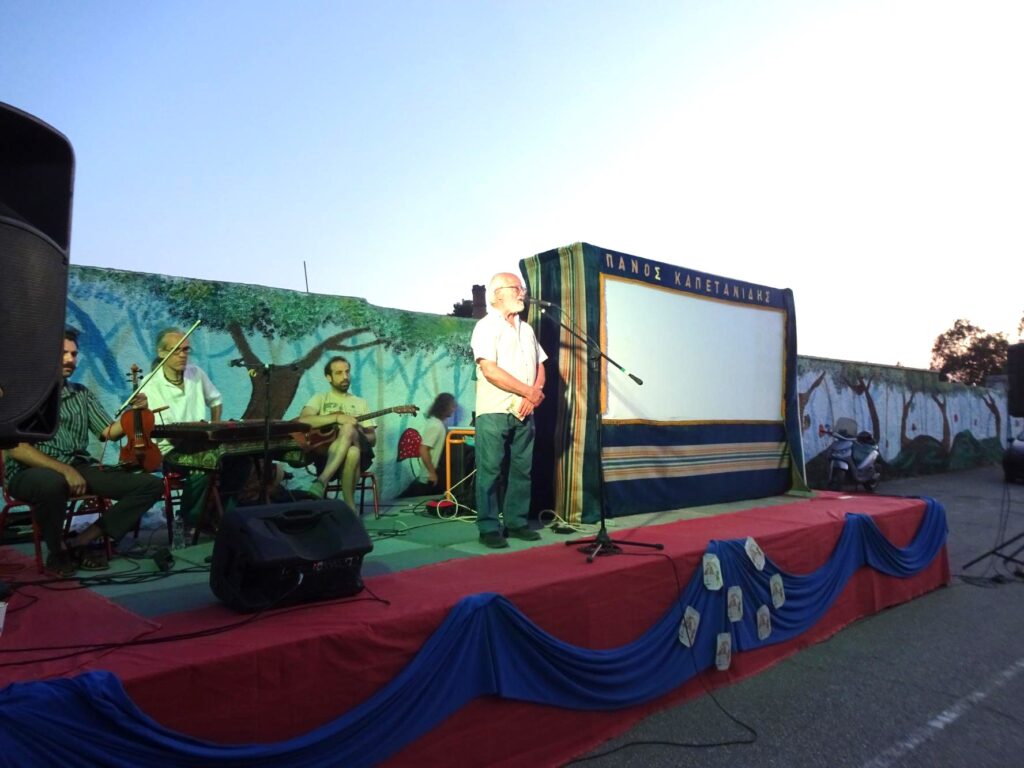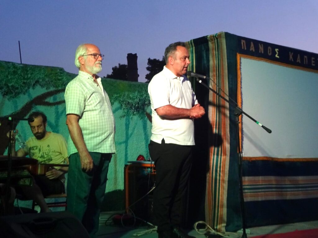 Επίσης, ο Πρόεδρος του Πανελλήνιου Σωματείου Θεάτρου Σκιών, κ. Αντώνης Παντιώρας, είπε πως: «Το Πανελλήνιο Σωματείο Θεάτρου Σκιών ιδρύθηκε το 1925. 2025 σήμερα. 100 χρόνια Ιστορίας. Πέρασαν όλα αυτά τα χρόνια οι πιο σημαντικοί καραγκιοζοπαίχτες, οι παλαιότεροι, οι νεότεροι, και σήμερα έχω την τιμή να έχουμε παράσταση από τον Παναγιώτη Καπετανίδη, έναν, αν θέλετε, μέντορά μου, έναν δάσκαλό μου, ο οποίος έχει προσφέρει πάρα πολλά στην Τέχνη. Επίσης, υπήρξε και Πρόεδρος του Σωματείου μας για 35, περίπου, συναπτά έτη. Σας ευχαριστούμε πάρα πολύ. Σας περιμένουμε και τις επόμενες ημέρες. Και κρατείστε την ελπίδα, που πεθαίνει πάντα τελευταία αγαπητοί μου. Ελπίδα. Ελπίδα και αισιοδοξία. Να ε΄σιτε καλά.».