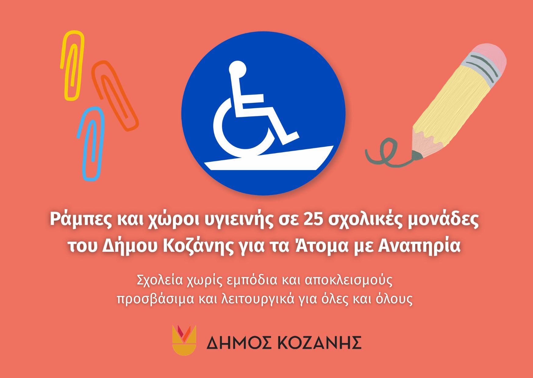 Ράμπες και χώροι υγιεινής σε 25 σχολικές μονάδες του Δήμου Κοζάνης για τα Άτομα με Αναπηρία