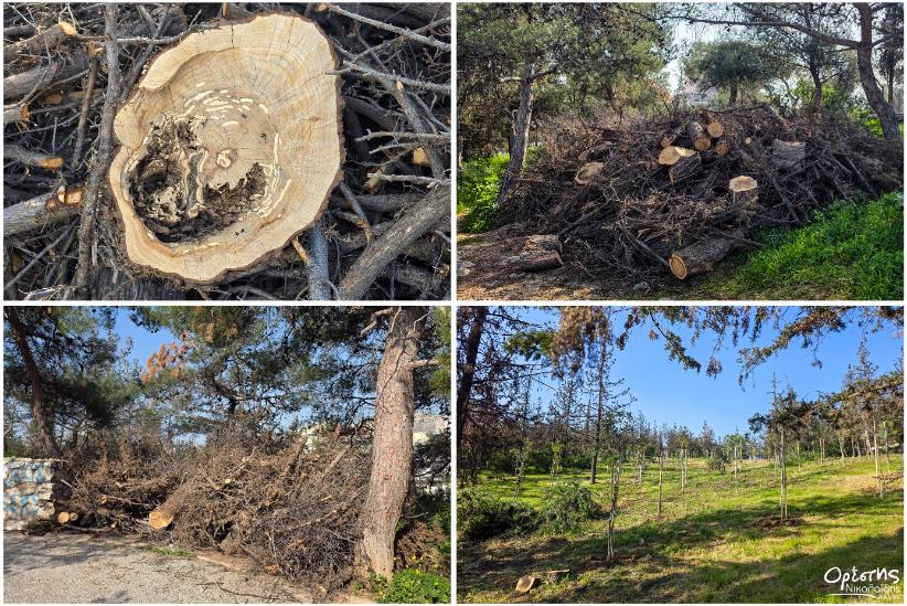 Αξίζει να σημειωθεί πως στο πλαίσιο των παρεμβάσεων, που πραγματοποιήθηκαν, και μετά από έγκριση του Δασαρχείου Πειραιά, η Διεύθυνση Πρασίνου & Περιβάλλοντος έχει προχωρήσει στην κοπή, περίπου, 300 ξερών δέντρων και στην αντικατάστασή τους με νέα.