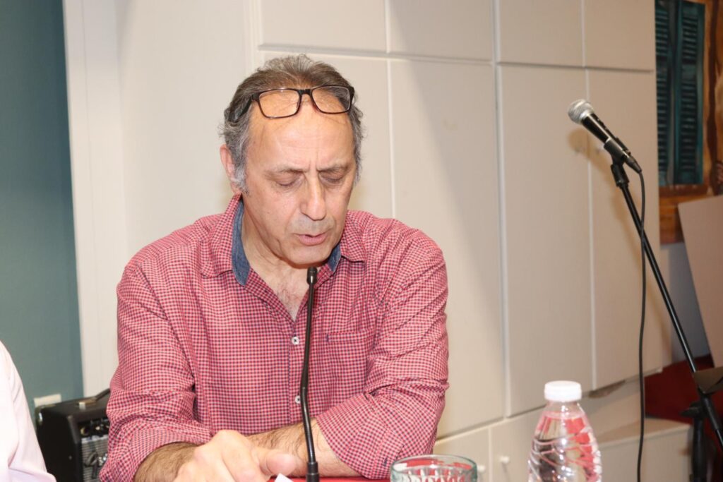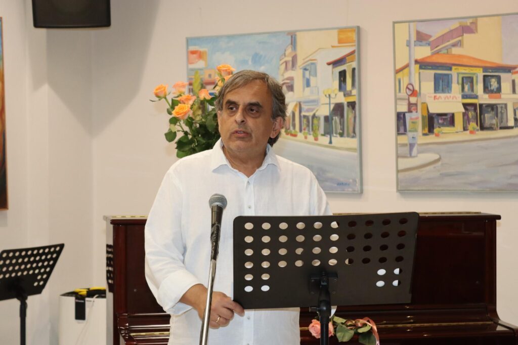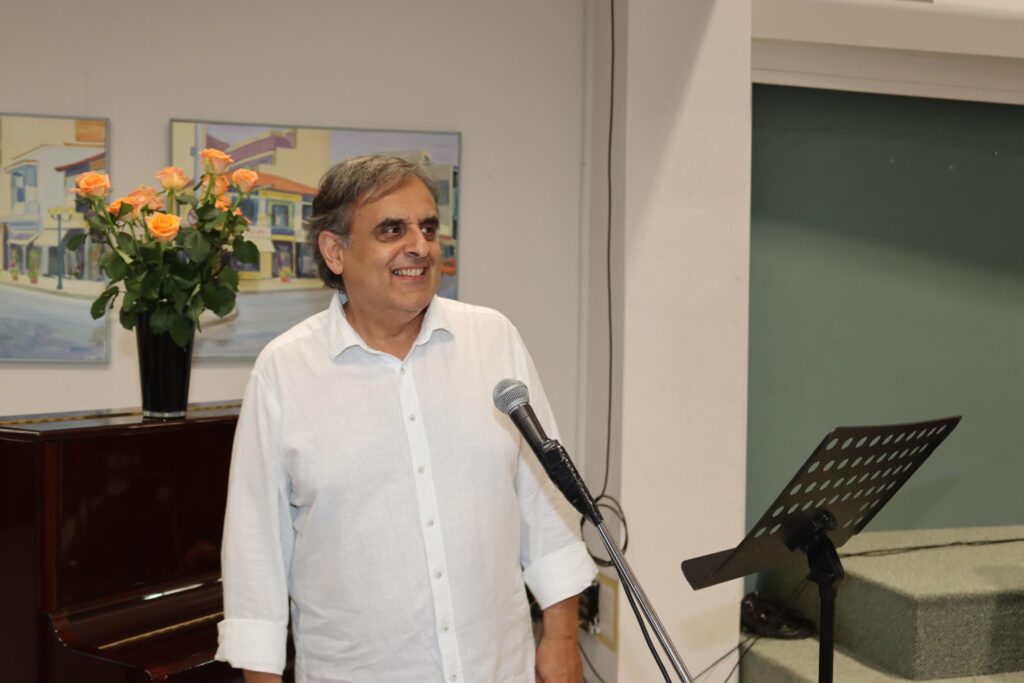 Τη Νεφέλη, που ακούσατε με το φλάουτό της και μας μάγεψε, ο Λευτέρης Καρνασόπουλος, που κάθεται εκεί και θα μας μαγέψει με την κιθάρα του και τη φωνή του, είναι μαθητές του Γιάννη του Κοντίτση, στο σχολείο του. Όλα αυτά, όπως καταλαβαίνετε, δένουν γύρω από ένα σχολείο, το 1ο Λύκειο της Νέας Ιωνίας. Εδώ είναι παιδιά και του 2ου Λυκείου, βεβαίως. Και εκεί εγώ πέρασα 20 χρόνια της ζωής μου. Εκεί, ωρίμασα μπορώ να πω. Όταν ήρθα στη Νέα Ιωνία είχα τέσσερα χρόνια υπηρεσίας μόλις. Μπήκα σε παιδιά Λυκείου και με προστάτεψαν. Ένιωθα την προστασία, που απολάμβανα από τα παιδιά αυτά. Για να μην παραστρατήσω, για να μην ξεφύγω. Όταν γινόταν κάτι που δεν άρεσε μέσα στην τάξη οι πιο πολλοί προσπαθούσαν να ηρεμήσουν τους άλλους. Αρρένων ήταν αρχικά το σχολείο. Μετά έγινε μικτό. Αυτά για τους μαθητές μου, τους εκλεκτούς παρουσιαστές. Και, βεβαίως, η κ. Τέση Μπάιλα, η οποία είναι και η κεντρική παρουσιάστρια της εκδήλωσης.