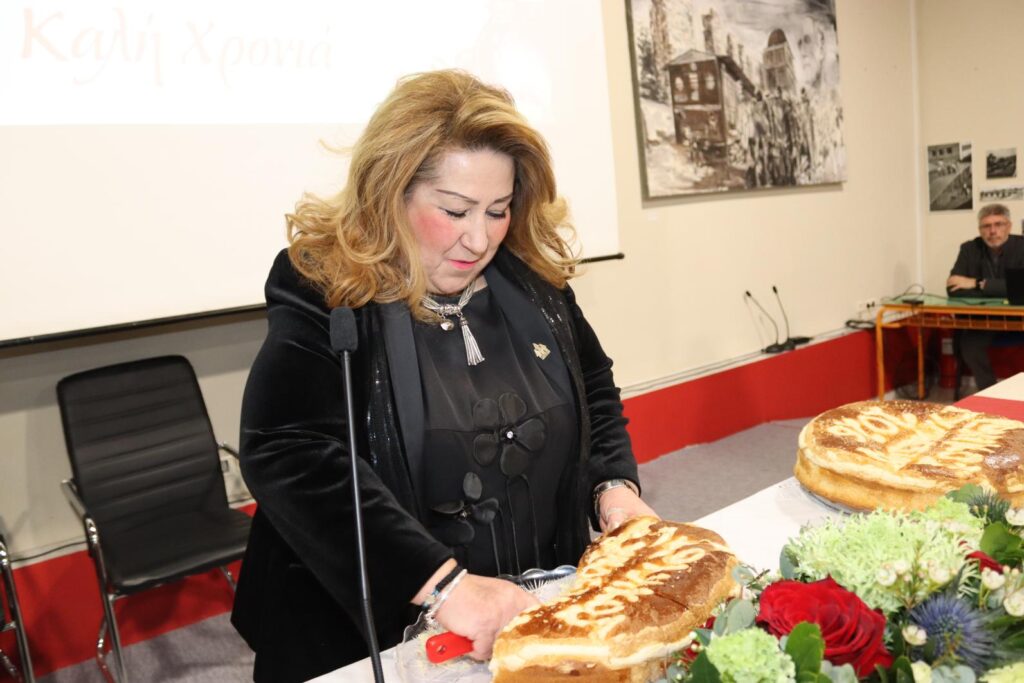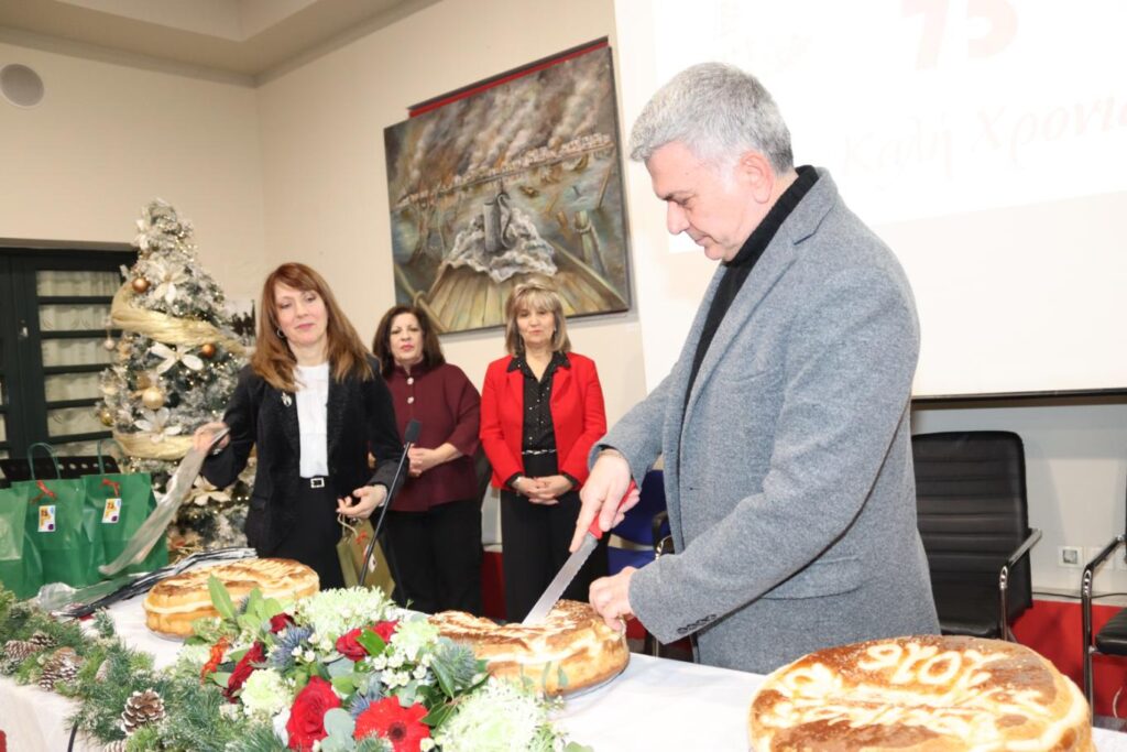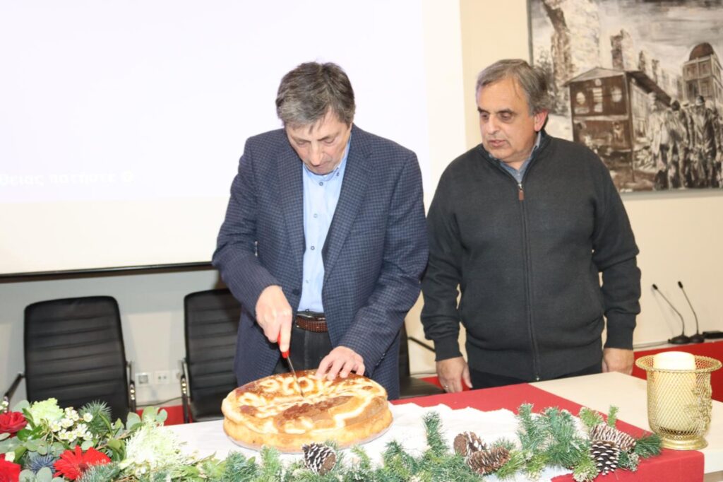 Στη συνέχεια, κομμάτια πρωτοχρονιάτικης πίτας έκοψαν και ευχήθηκαν, κατά σειρά: