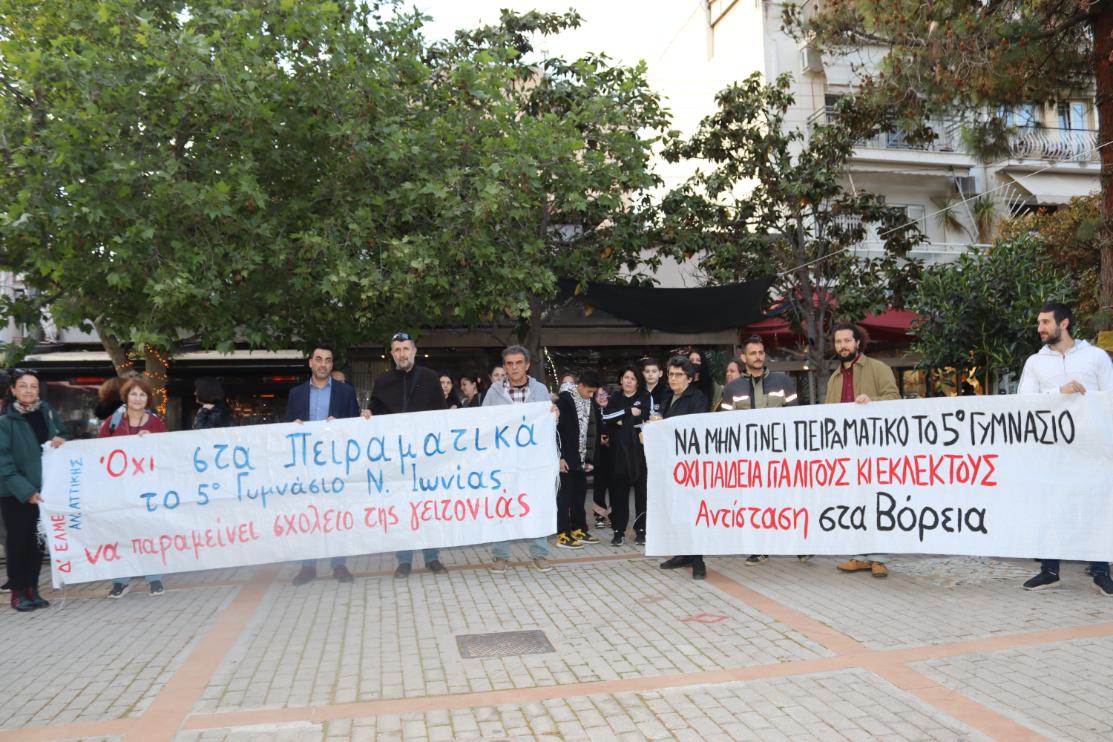 Σημαντική κινητοποίηση της Δ΄ Ε.Λ.Μ.Ε. στην Πλατεία Σημηριώτη ενάντια στη μετατροπή του 5ου Γυμνασίου Ν. Ιωνίας σε Πειραματικό Σχολείο