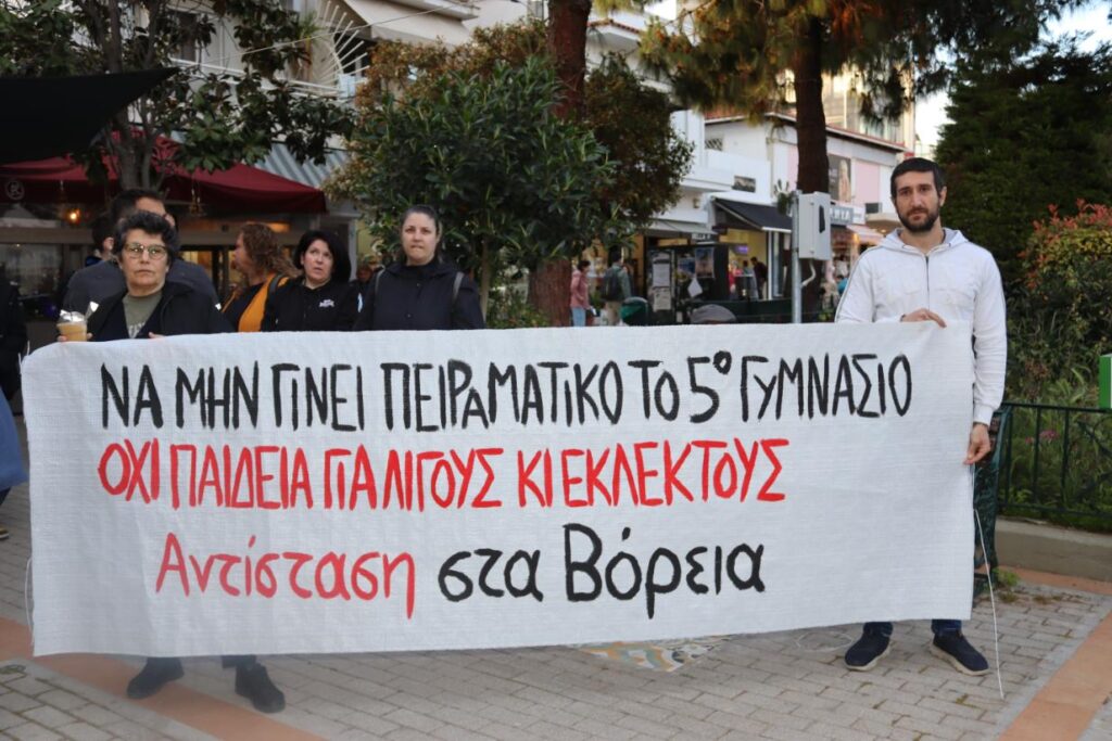 Επίσης, χαιρετισμό απηύθυνε και η Πρόεδρος του Συλλόγου Εκπαιδευτικών Π.Ε. «Γ. Σεφέρης», κ. Ντιάνα Λιάκου, λέγοντας πως: «Εκ μέρους του Συλλόγου Εκπαιδευτικών Πρωτοβάθμιας Εκπαίδευσης «Γεώργιος Σεφέρης», χαιρετίζουμε τη σημερινή κινητοποίηση και καταγγέλλουμε τη μετατροπή του 5ου Γυμνασίου σε Πειραματικό.