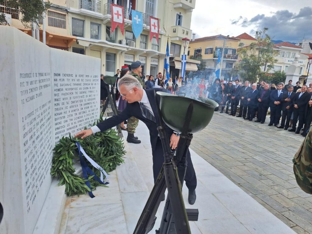 Ακολούθησε επιμνημόσυνη δέηση και κατάθεση στεφάνων στο Ηρώο της πλατείας 23ης Μαρτίου, όπου ο Περιφερειάρχης Πελοποννήσου συμμετείχε μαζί με τους εκπροσώπους των αρχών, αποδίδοντας τιμή στους αγωνιστές της Επανάστασης. Η τελετή ολοκληρώθηκε με την τήρηση ενός λεπτού σιγής και την ανάκρουση του Εθνικού Ύμνου.