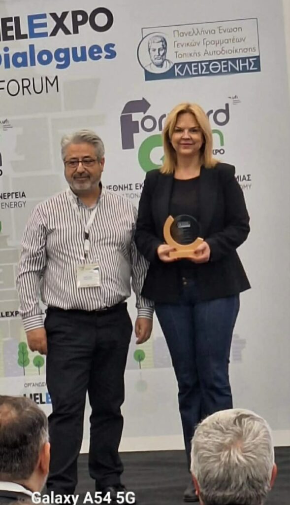 Επίσης, κατά τη λήξη του Συνεδρίου, η Ένωση πραγματοποίησε βραβεύσεις, μεταξύ των οποίων, βράβευσε τη Δήμαρχο Χαλκιδέων, κ. Έλενα Βάκα, για τη δουλειά και τον σχεδιασμό σε θέματα περιβάλλοντος.