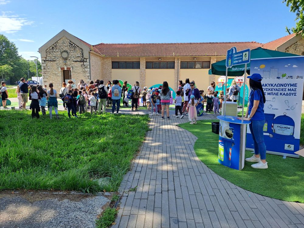 Στον προαύλιο χώρο του Πολιτιστικού Κέντρου τοποθετήθηκαν εκπαιδευτικά επιδαπέδια παιχνίδια και διαδραστικά εργαστήρια για τους μικρούς μαθητές, με θέμα την ανακύκλωση και την προστασία του περιβάλλοντος.