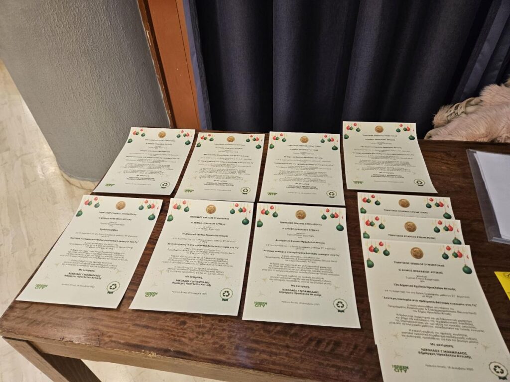 Τα σχολεία της πόλης του Ηρακλείου Αττικής, που συμμετείχαν στον Διαγωνισμό Ζωγραφικής για την προώθηση του μηνύματος της Ανακύκλωσης, βράβευσε ο Δήμος Ηρακλείου Αττικής σε μια γιορτινή εκδήλωση, που πραγματοποιήθηκε στο Πολιτιστικό Πολύκεντρο «Ηλέκτρα Αποστόλου».