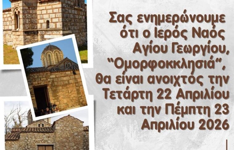 Ετικέτα: ΑΝΟΙΧΤΟΣ ΚΑΙ ΦΕΤΟΣ Ο ΙΕΡΟΣ ΝΑΟΣ ΑΓΙΟΥ ΓΕΩΡΓΙΟΥ (ΟΜΟΡΦΟΚΚΛΗΣΙΑ) 22 & 23 ΑΠΡΙΛΙΟΥ 2026