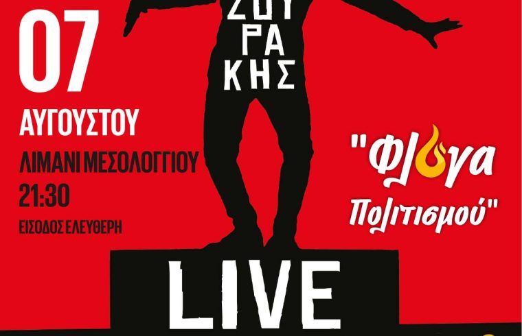 Ο Περιφερειάρχης Δυτικής Ελλάδας κ. Νεκτάριος Φαρμάκης και ο Αντιπεριφερειάρχης Πολιτισμού και Τουρισμού κ. Νικόλαος Κοροβέσης προσκαλούν το Μεσολογγίτικο και όχι μόνον κοινό σε μια ξεχωριστή μουσική παράσταση γεμάτη εκπλήξεις, με τον Πάνο Μουζουράκη και τη Μαρία Σακελλάρη, η οποία θα πραγματοποιηθεί σήμερα Δευτέρα 7 Αυγούστου 2023 και ώρα 21:30, στο Λιμάνι του Μεσολογγίου, στο πλαίσιο των πολιτιστικών εκδηλώσεων της Περιφέρειας με γενικό τίτλο: Φλόγα Πολιτισμού», με ελεύθερη είσοδο για όλες και όλους.