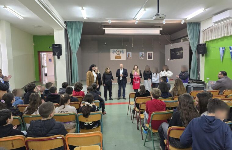 Το 5ο Γυμνάσιο Ηρακλείου Αττικής επισκέφθηκε ο Δήμαρχος της πόλης, κ. Νίκος Μπάμπαλος, για να γνωρίσει και να συγχαρεί τα 5 παιδιά του σχολείου, που πριν από λίγο καιρό βρήκαν και διέσωσαν ένα χτυπημένο από αυτοκίνητο γατάκι.