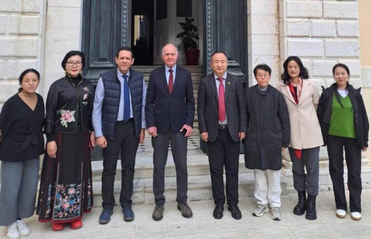 Στο Ιστορικό Δημαρχείο της πόλης υποδέχθηκε χθες ο Αντιδήμαρχος Βιώσιμης Τουριστικής Ανάπτυξης και Δημοσίων Σχέσεων, κ. Σπύρος Χαλικιόπουλος, τον Καθηγητή Αρχαίας και Σύγχρονης Κινεζικής Λογοτεχνίας και Κινεζικού Πολιτισμού στο Πανεπιστήμιο Γλώσσας και Πολιτισμού του Πεκίνου (BLCU) και Διευθυντή του Παγκόσμιου Κέντρου Σινολογίας, κ. Xu Baofeng, καθώς και τα μέλη της κινεζικής αντιπροσωπείας, οι οποίοι παρευρέθηκαν στην Κέρκυρα για τα επίσημα εγκαίνια του Ελληνικού Κέντρου Σινολογίας, που τελέστηκαν παρουσία του Πρέσβη της Λαϊκής Δημοκρατίας της Κίνας στην Ελλάδα, κ. Fang Qiu.