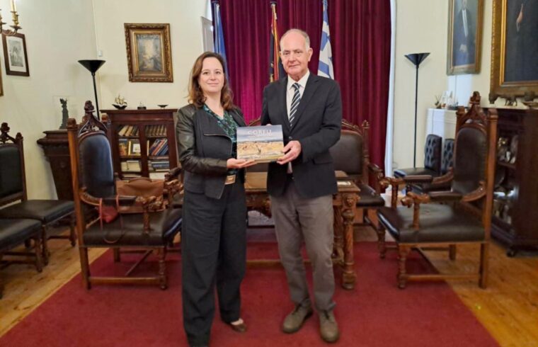 Τη Γενική Πρόξενο της Γαλλίας στην Ελλάδα, κ. Diane Roeser, συνοδευόμενη από τον Πρόξενο της Γαλλίας στην Κέρκυρα, κ. Φλοράν Καββάδα, υποδέχθηκε στο Ιστορικό Δημαρχείο της Κέρκυρας ο Αντιδήμαρχος Βιώσιμης Τουριστικής Ανάπτυξης και Δημοσίων Σχέσεων κ. Σπύρος Χαλικιόπουλος.