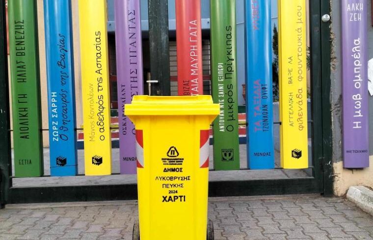 Ο Δήμος Λυκόβρυσης-Πεύκης με ενέργειες και πρωτοβουλίες του Δημάρχου κ. Μάριου Ψυχάλη υλοποιεί τη δέσμευση για αύξηση της ανακύκλωσης στην πόλη, τη φορά αυτή τοποθετώντας κίτρινους κάδους ανακύκλωσης χαρτιού σε όλα τα Δημοτικά, Γυμνάσια και Λύκεια.