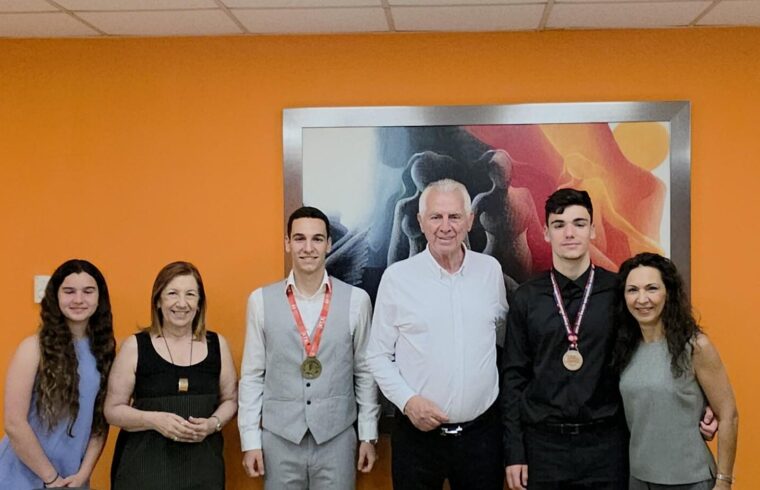 Ο Δήμαρχος Περιστερίου, κ. Ανδρέας Π. Παχατουρίδης, τίμησε δύο σπουδαίους μαθητές της πόλης, τα αδέλφια Κυριάκο και Μιχαήλ Τσουρέκα, απονέμοντάς τους το επίσημο σήμα με το έμβλημα του Περιστερίου, αναγνωρίζοντας τη διαχρονική τους αριστεία και τις εντυπωσιακές διακρίσεις τους σε εθνικούς και διεθνείς διαγωνισμούς.