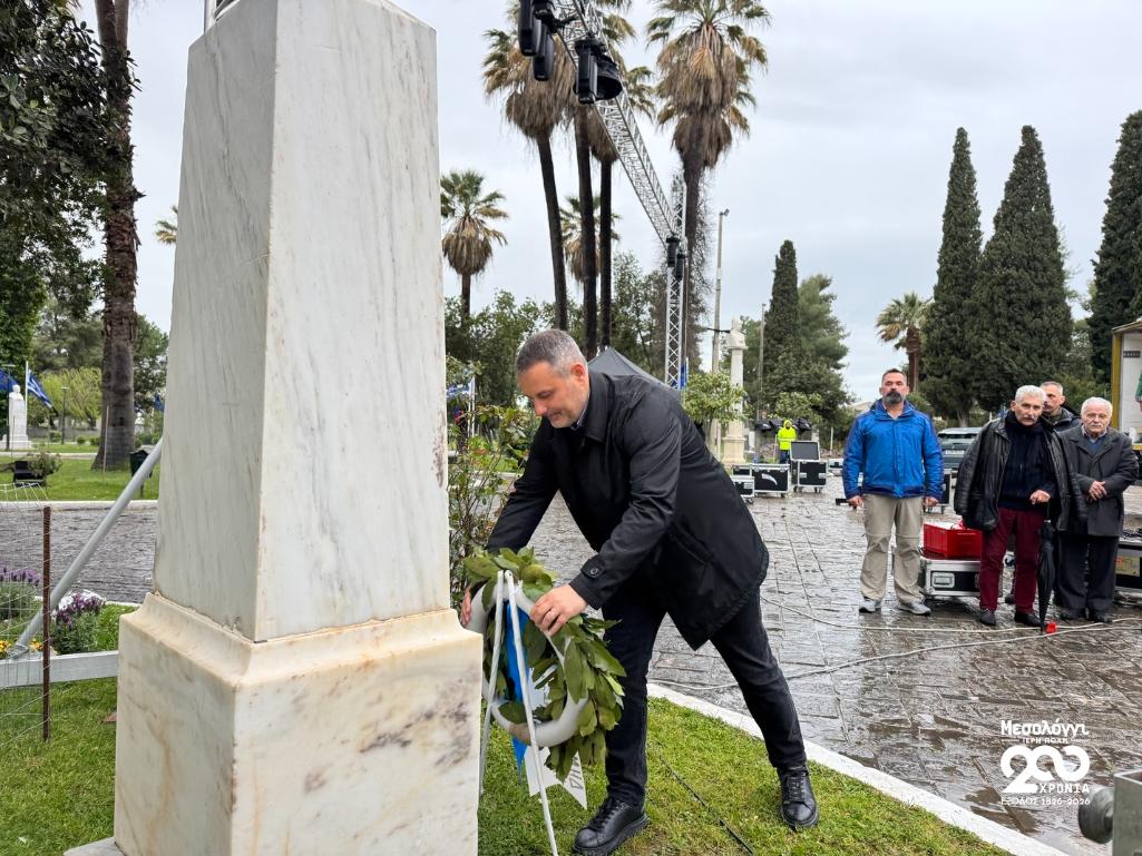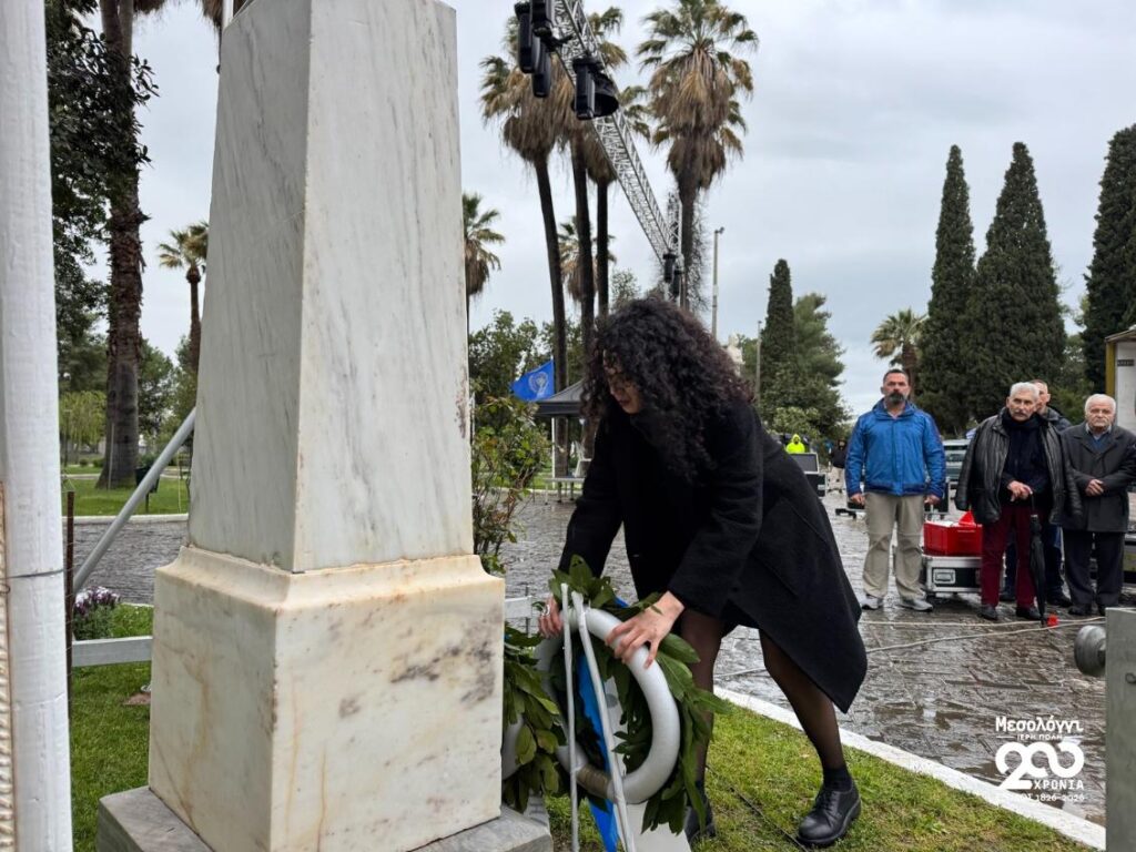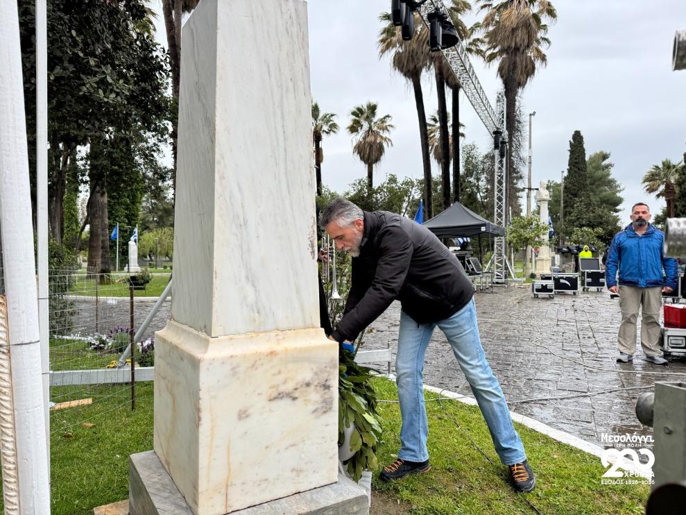 Στη σεμνή τελετή, που έλαβε χώρα, στεφάνι κατέθεσαν ο Δήμαρχος της Ιεράς Πόλεως Μεσολογγίου, κ. Σπυρίδων Διαμαντόπουλος, η εκπρόσωπος του Ιστορικού Μουσείου «Διέξοδος», κ. Δήμητρα Καρέτσου, ο Πρόεδρος του Συλλόγου «Οι Φίλοι της Μουσικής Διονύσιος Σολωμός», κ. Τάκης Φωλιάς, ο Πρόεδρος του «Ιστορικού Συλλόγου Ιεράς Πόλεως Μεσολογγίου», κ. Νάσος Αγγελόπουλος, καθώς και ο εκπρόσωπος του «Ομίλου Απογόνων Αγωνιστών και Ιστορικών Γενών της Ελλάδος», κ. Θεόδωρος Κωτσάκης.