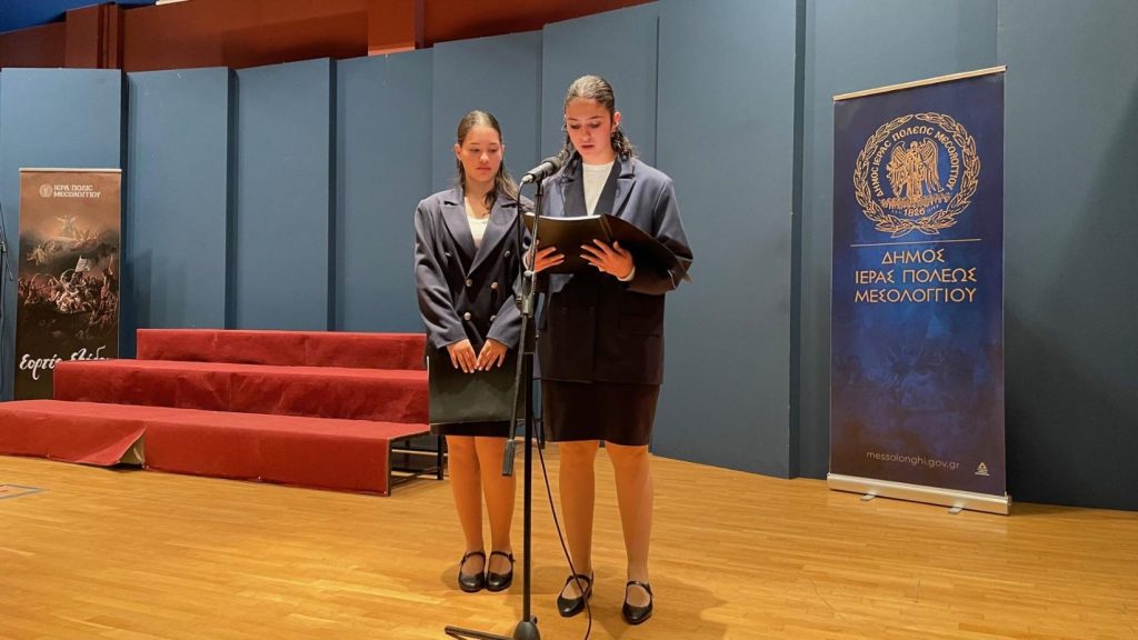 Ακολούθησε ανάγνωση του ποιήματος: «Τρίτο κουδούνι», σε επιμέλεια της φιλολόγου κ. Ζέτας Λάττα, από τις μαθήτριες Ευαγγελία Κορδάτου και Ειρήνη Τσιρόγλου, μέλη της θεατρικής ομάδας του 2ου Γυμνασίου Μεσολογγίου, ενώ προβλήθηκε το ντοκιμαντέρ μικρού μήκους, με τίτλο: «Η αγκαλιά της Μόρφου», και ακολούθησαν τραγούδια του κυπριακού αγώνα και της Ελληνικής Επανάστασης, από τη Χορωδία του Τμήματος Μουσικών Σπουδών της Φιλοσοφικής Σχολής του Ε.Κ.Π.Α., υπό τη Διεύθυνση του Καθηγητή κ. Νικολάου Μαλιάρα.