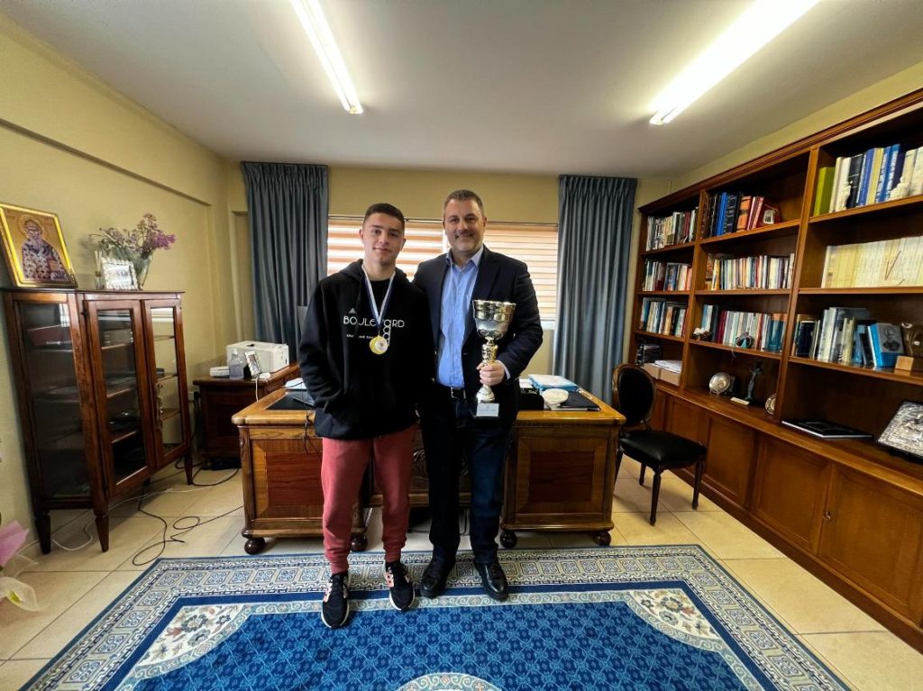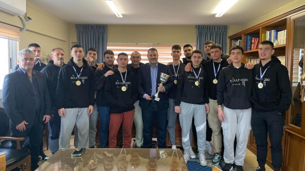 Τον «Λέοντα Μεσολογγίου», την ομάδα που κατέκτησε το πρωτάθλημα εφήβων της Ε.Σ.Κ.Α.Β.Δ.Ε., υποδέχθηκε σήμερα, Δευτέρα 26 Φεβρουαρίου 2024, στο γραφείο του ο Δήμαρχος Ιεράς Πόλης Μεσολογγίου, κ. Σπύρος Διαμαντόπουλος.