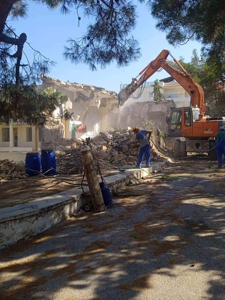 Οι εργασίες για την ανέγερση της καινούργιας πτέρυγας στο 4ο Δημοτικό Σχολείο Ηρακλείου Αττικής, η οποία θα αντικαταστήσει το παλιό σεισμόπληκτο κτήριο και θα αναβαθμίσει το σχολείο με τις σύγχρονες υποδομές που θα προσθέσει ξεκίνησαν και το διάστημα αυτό τα συνεργεία γκρεμίζουν το παλιό κτήριο.