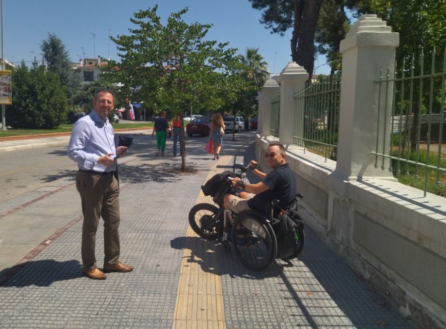 Στη συνέχεια, πραγματοποιήθηκε επίσκεψη στο κέντρο της πόλης, ώστε να διαπιστώσει ο κ. Elisei την κατάσταση της προσβασιμότητας στην Κομοτηνή.
