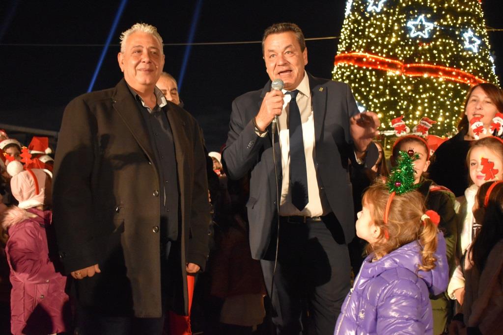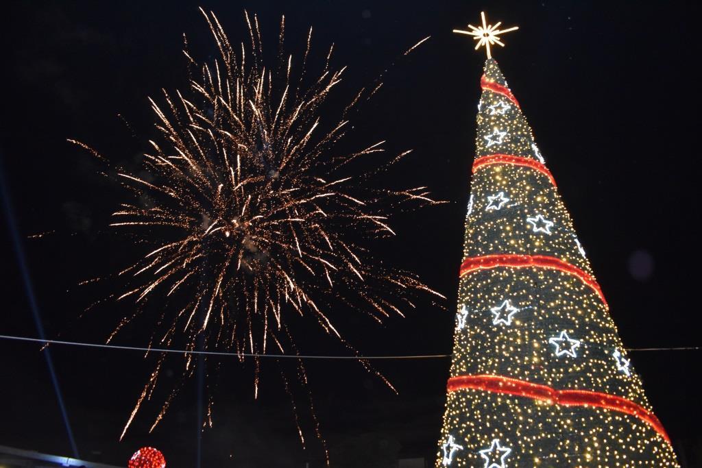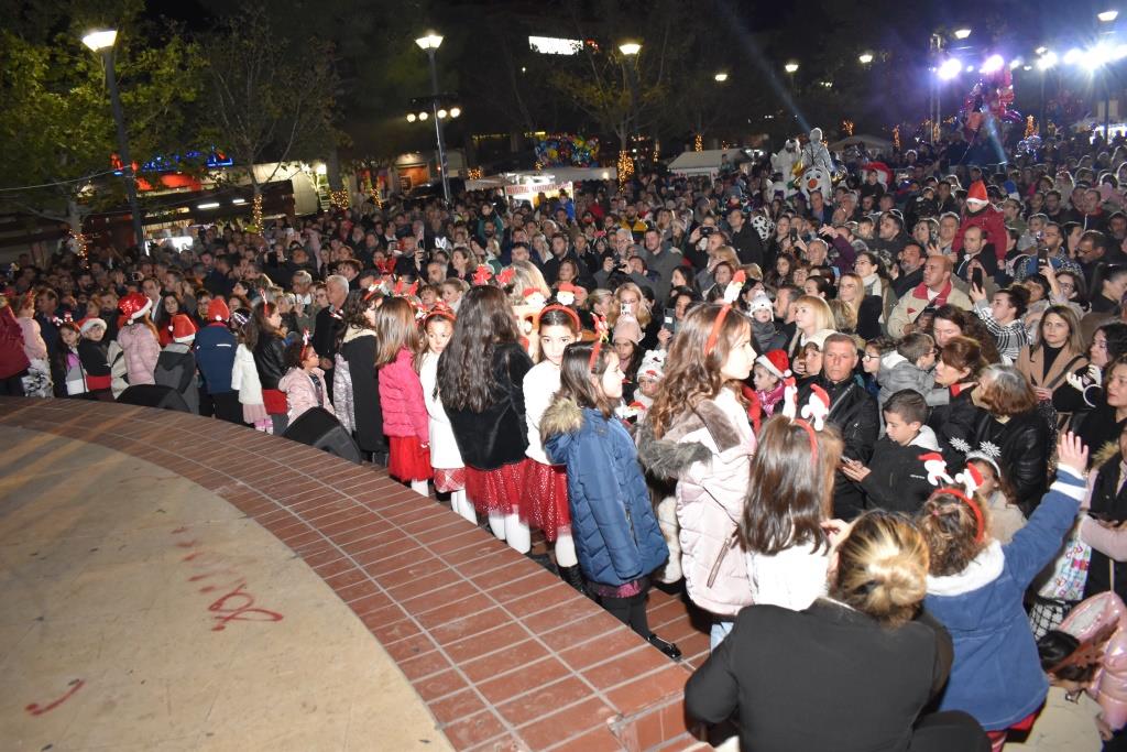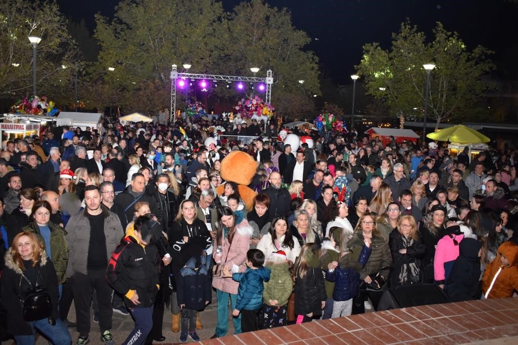 Στο πλευρό τους, οι μεγαλοφιγούρες και οι ξυλοπόδαροι έδωσαν μια ξεχωριστή διάσταση στη μεγάλη γιορτή, που κορυφώθηκε με τη φωταγώγηση του Χριστουγεννιάτικου δέντρου, η οποία συνοδεύτηκε με ομοβροντία πυροτεχνημάτων.