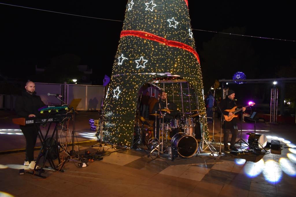 Τη λαμπερή βραδιά άνοιξε με Χριστουγεννιάτικες μελωδίες και ύμνους η Φιλαρμονική του Δήμου Φυλής και την ολοκλήρωσε η συναυλία της Μαλού, η οποία ερμήνευσε επιτυχίες του πενταγράμμου.