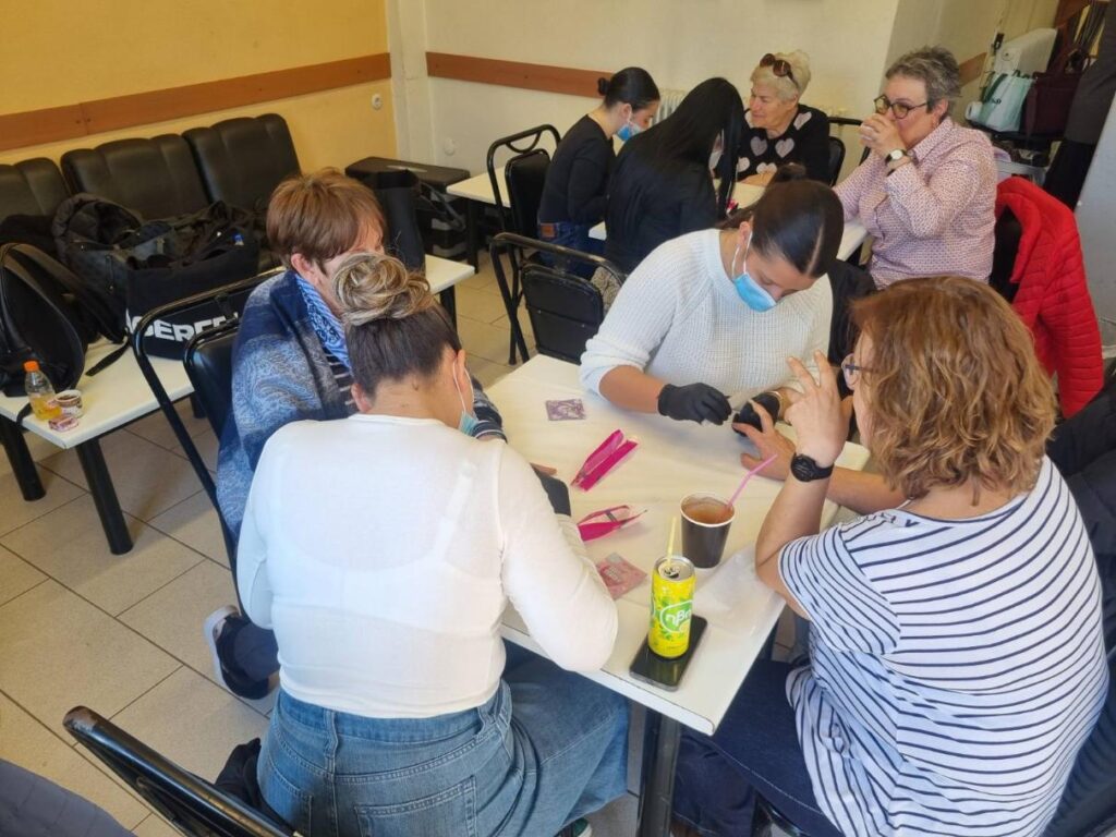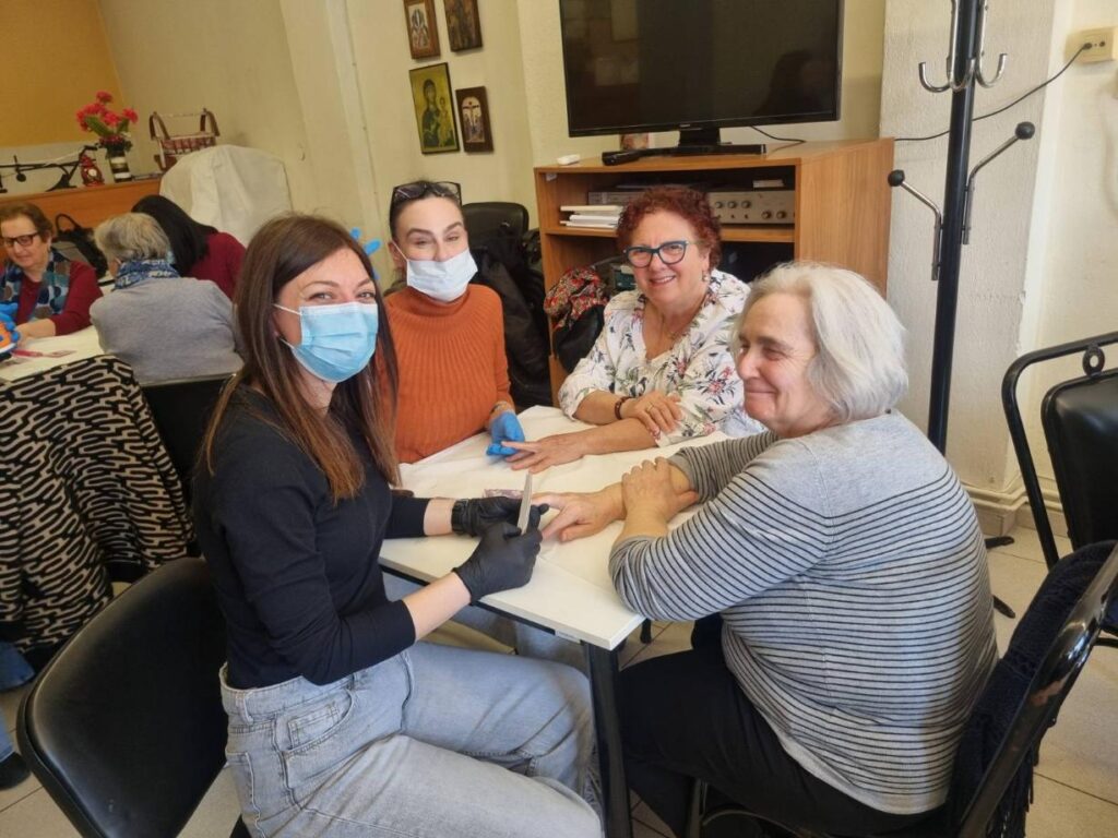 Ειδικότερα, οι σπουδάστριες ενημέρωσαν τα μέλη για τις συνηθέστερες παθήσεις των ποδιών, που εμφανίζονται σε αυτή τη φάση της ζωής, και έδωσαν έμφαση στην πρόληψη, στην υγιεινή, καθώς και στην αναγνώριση συμπτωμάτων, που χρήζουν προσοχής. Επιπλέον, παρείχαν υπηρεσίες καλλωπισμού χεριών και φροντίδας-περιποίησης άκρων.